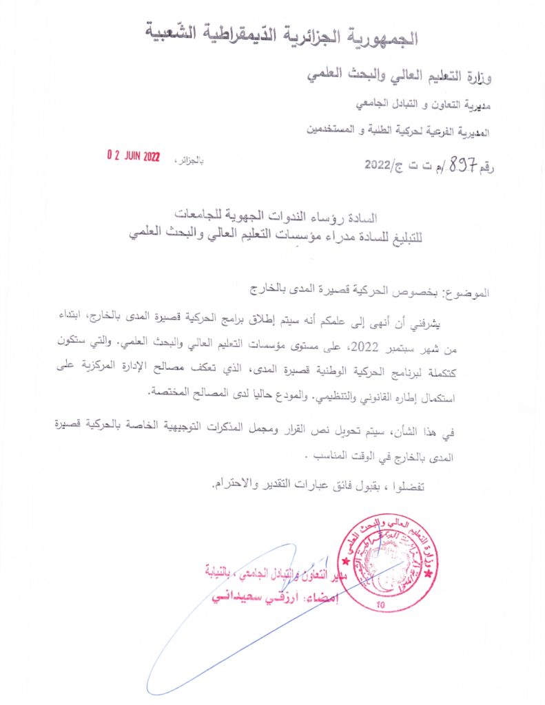 إعلان بخصوص الحركية قصيرة المدى بالخارج