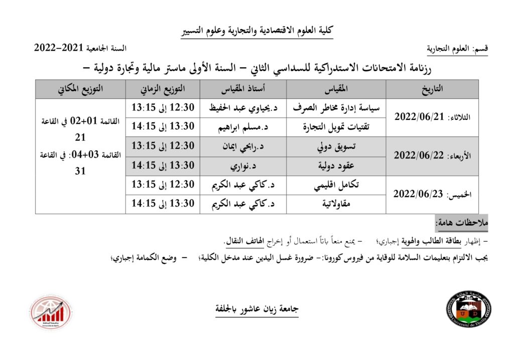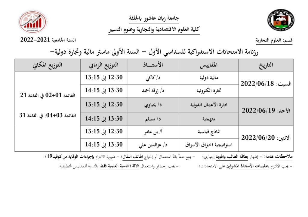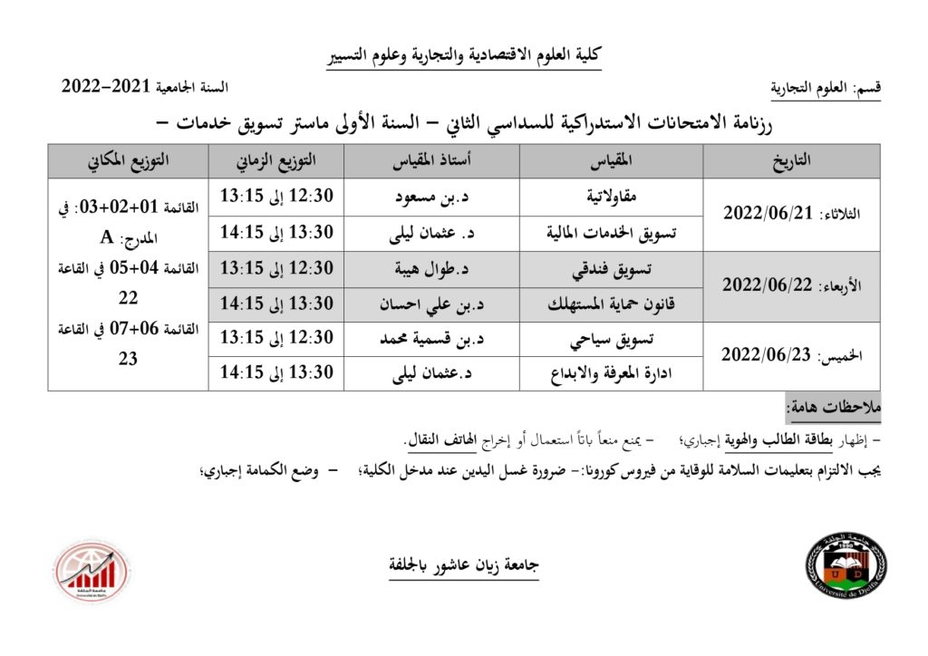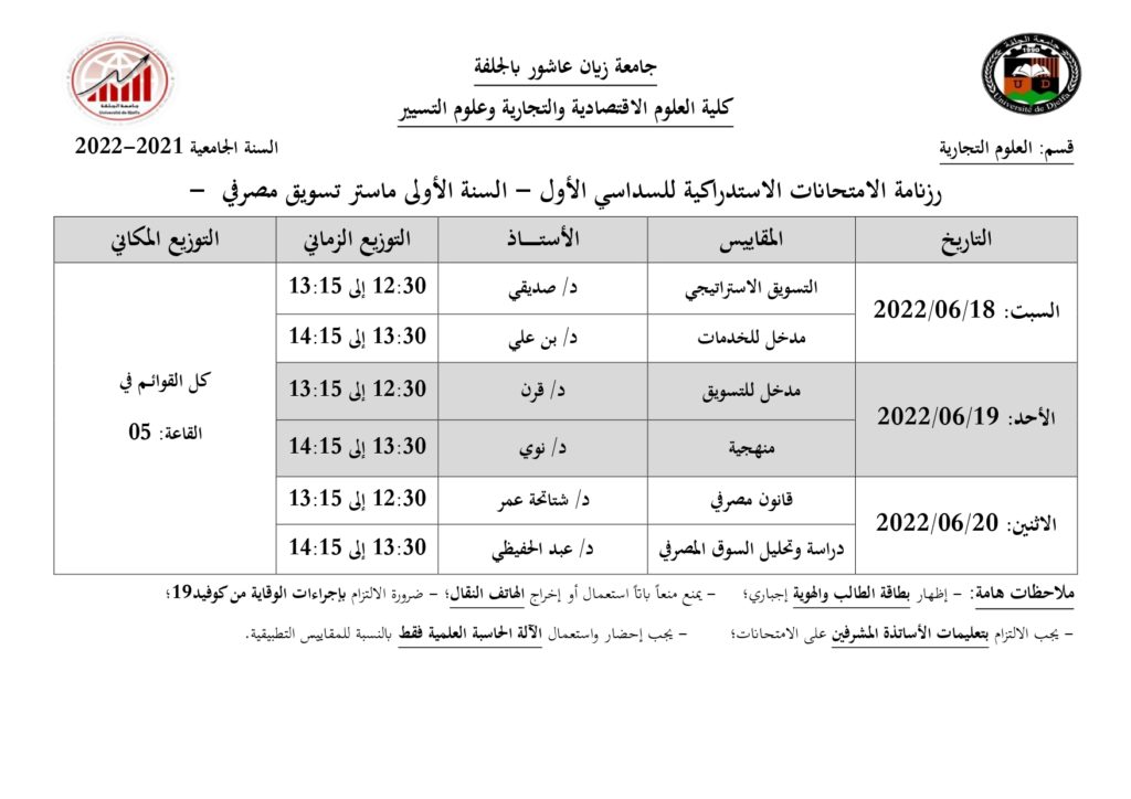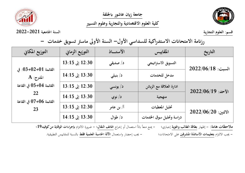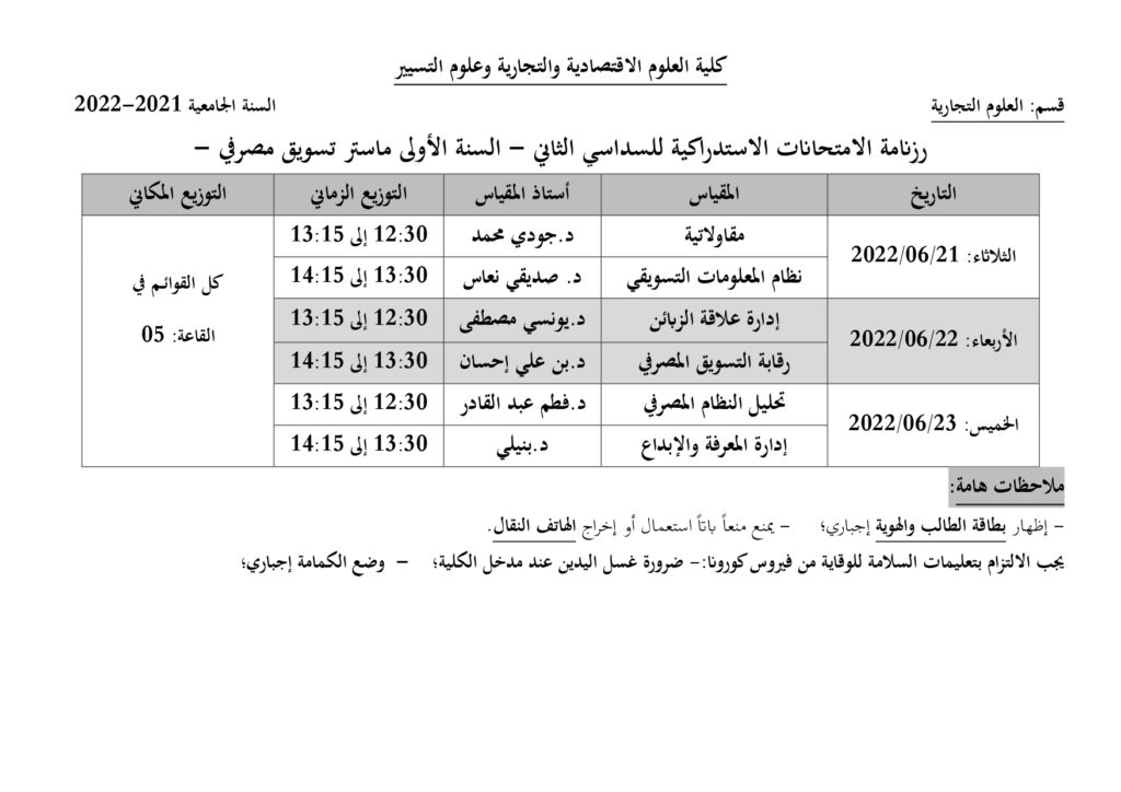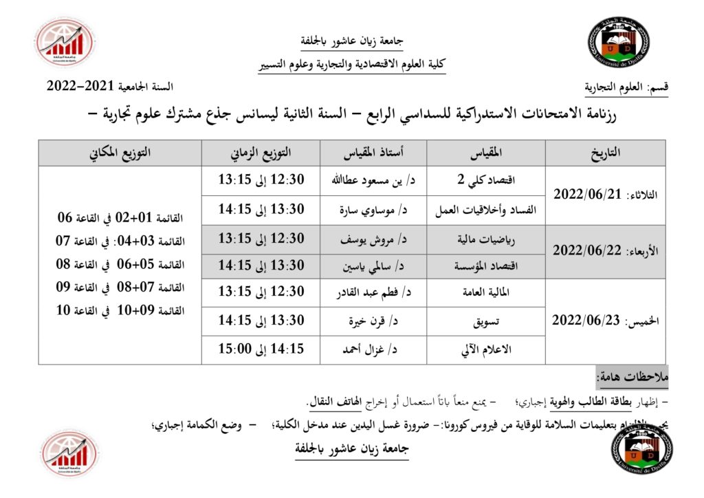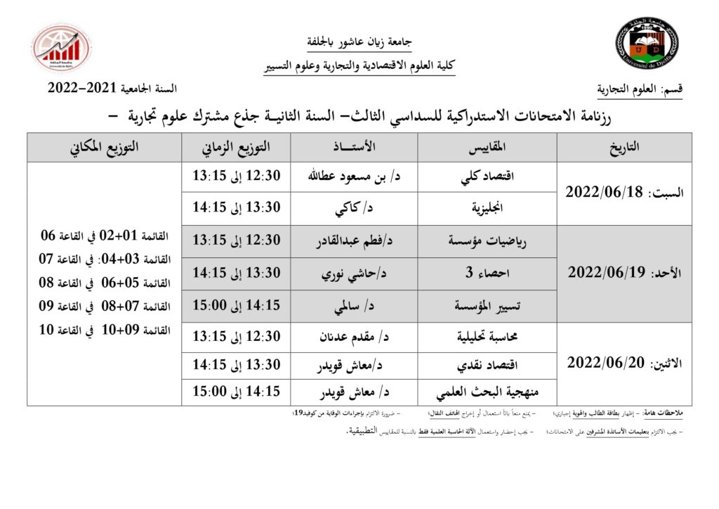 رزنامة الامتحانات الاستدراكية قسم العلوم التجارية