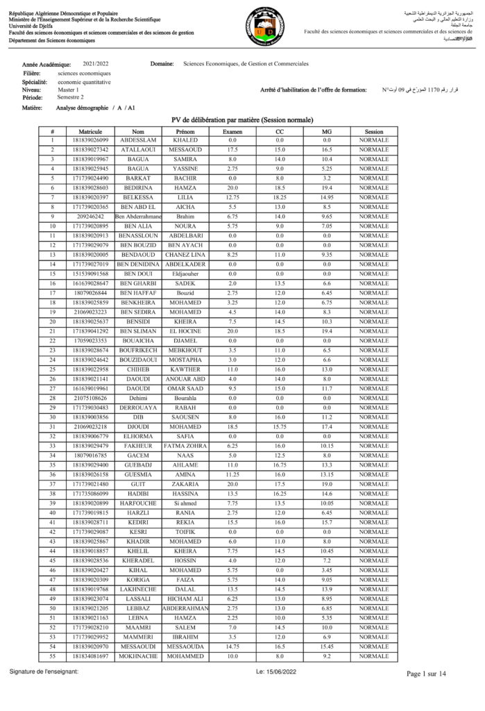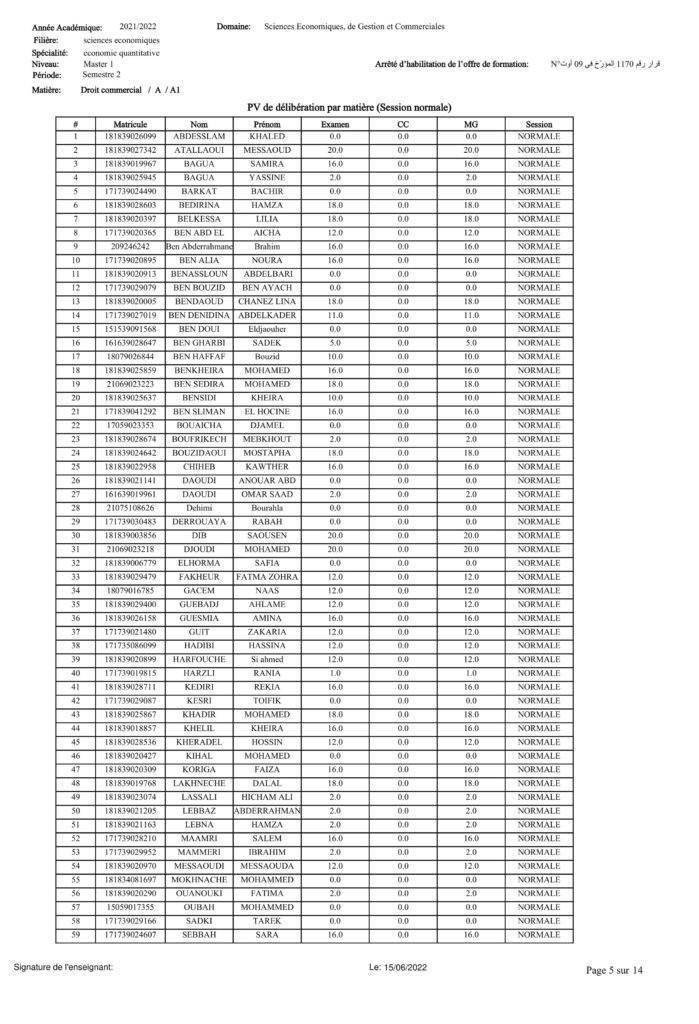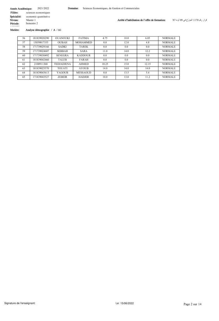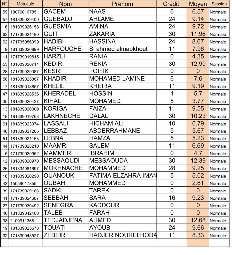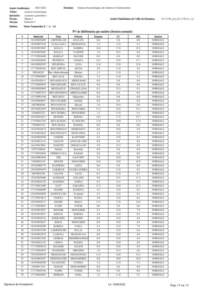نتائج السداسي الرابع للسنة 01 ماستر تخصص اقتصاد كمي علوم اقتصادية- قبل الطعون علامات مقاييس – السداسي الثاني للسنة 01 ماستر تخصص اقتصاد كمي – قبل الطعون