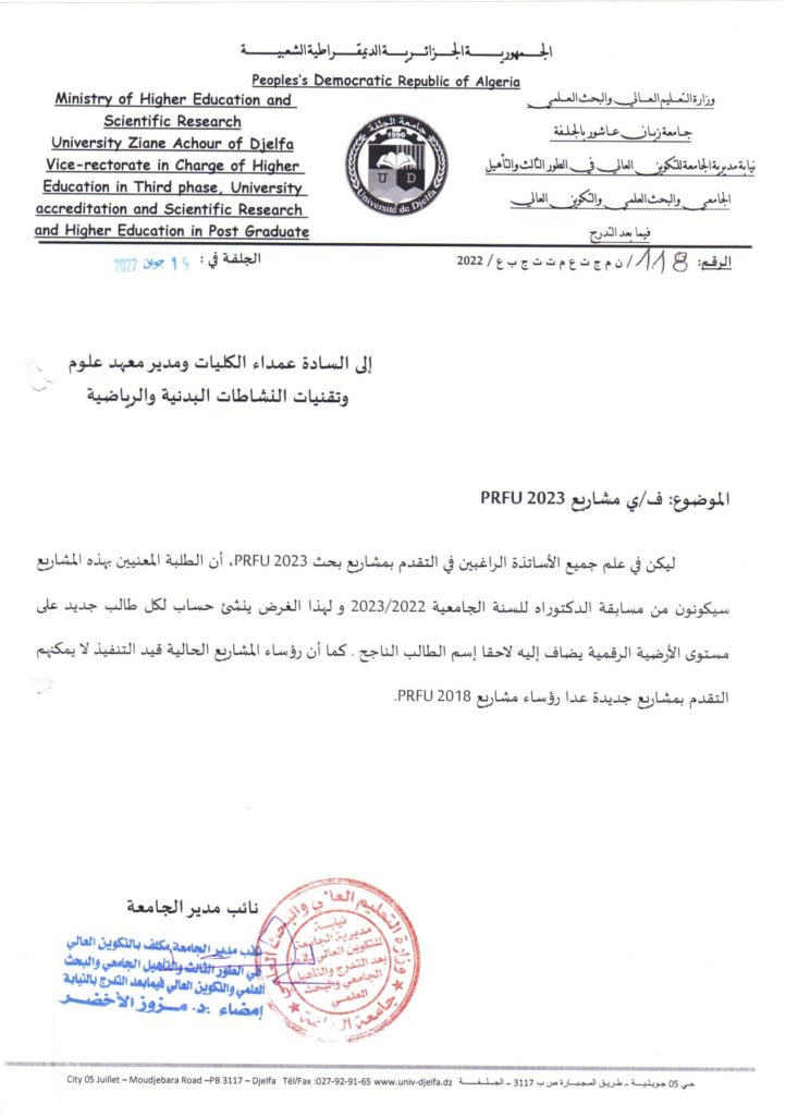 ف/ي مشاريع PRFU 2023