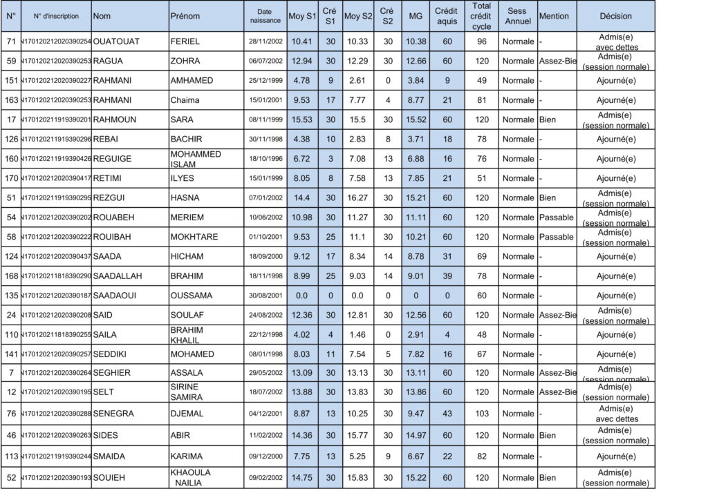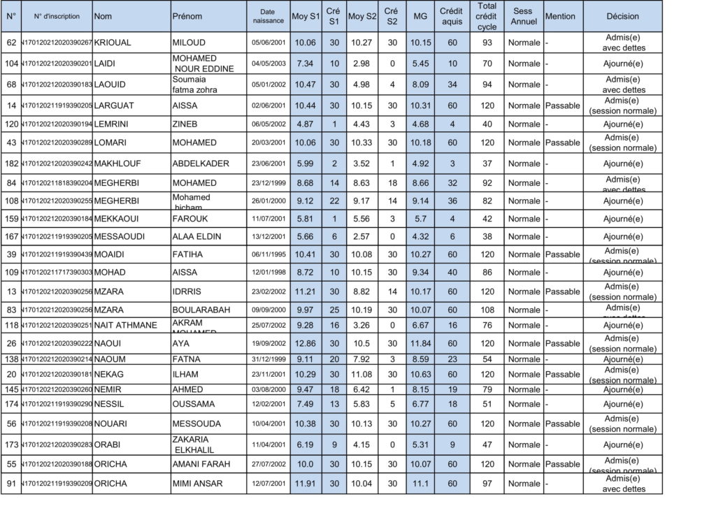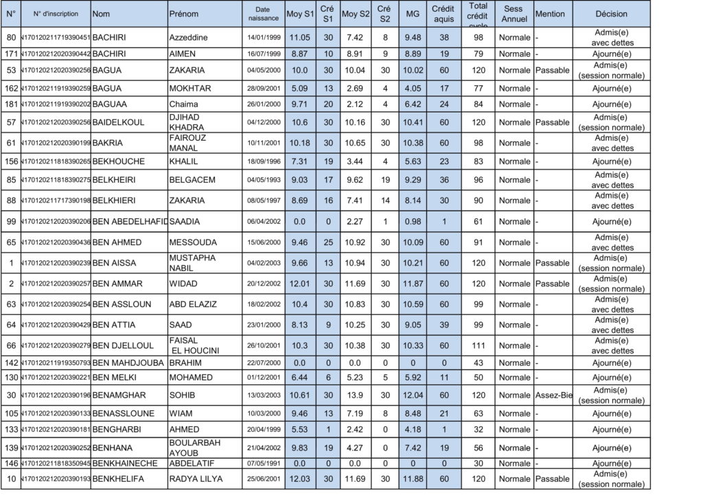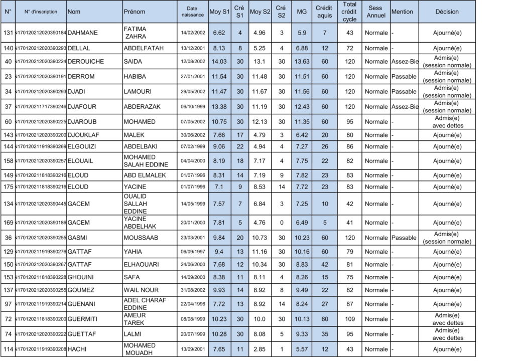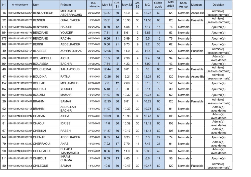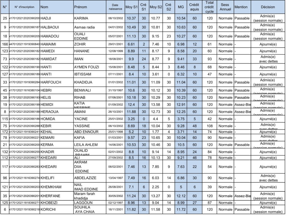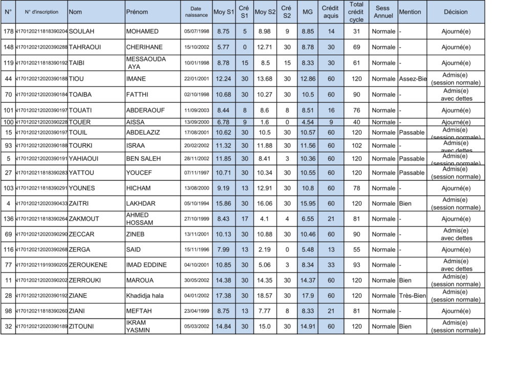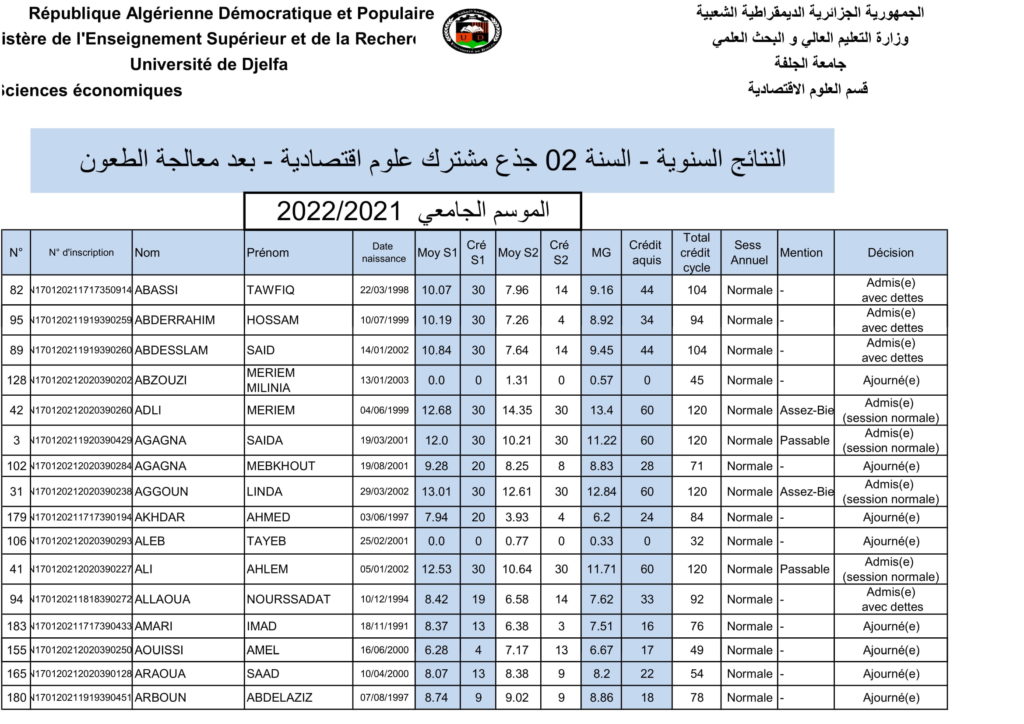 النتائج السنوية – للسنة 02 جذع مشترك- علوم اقتصادية – بعد معالجة الطعون