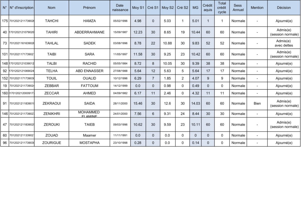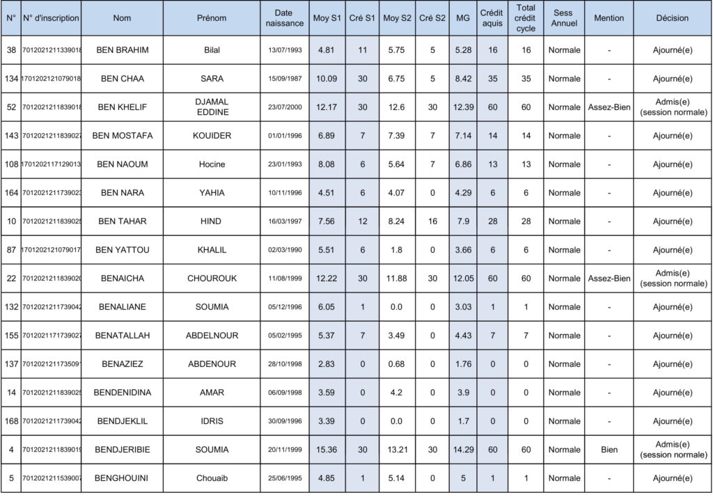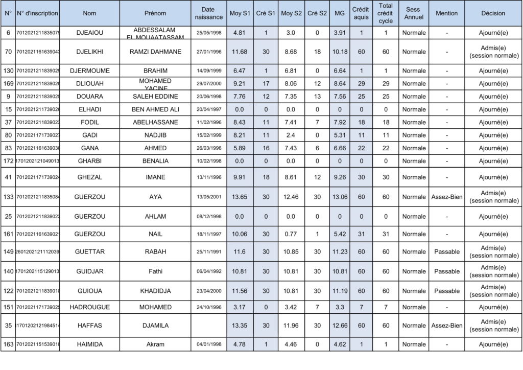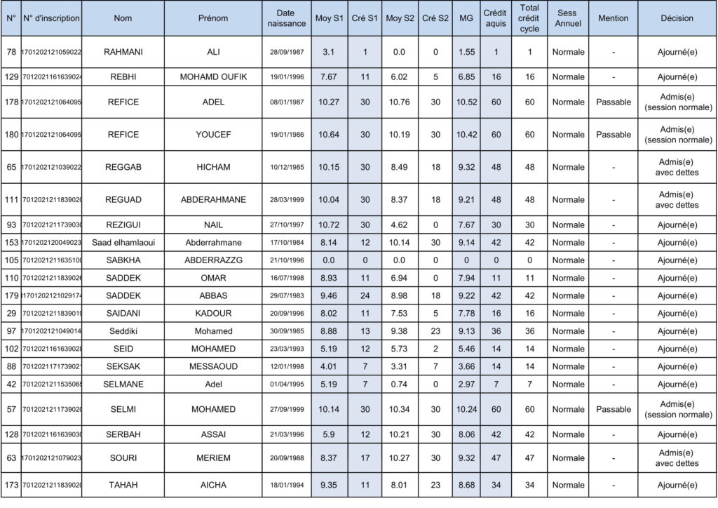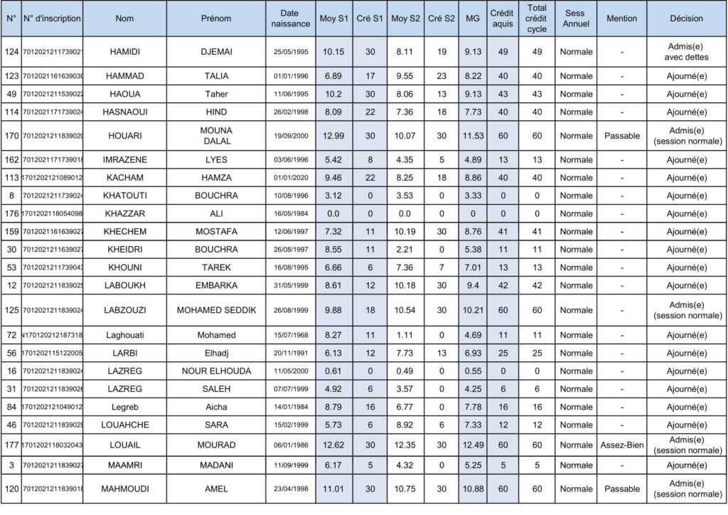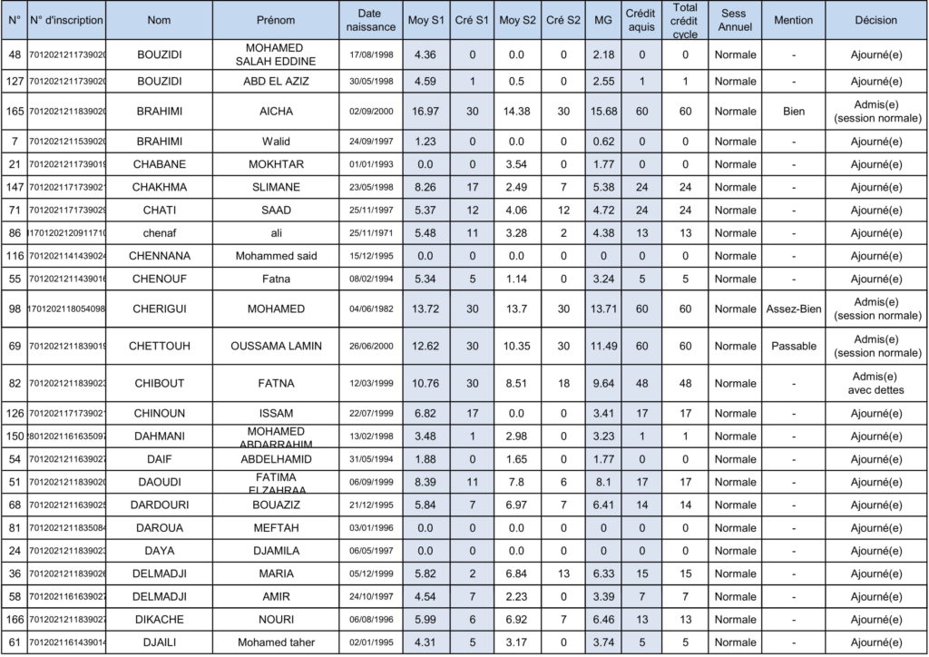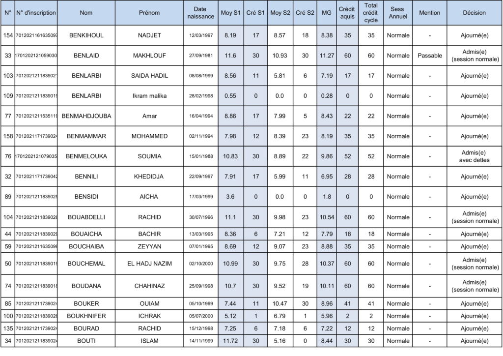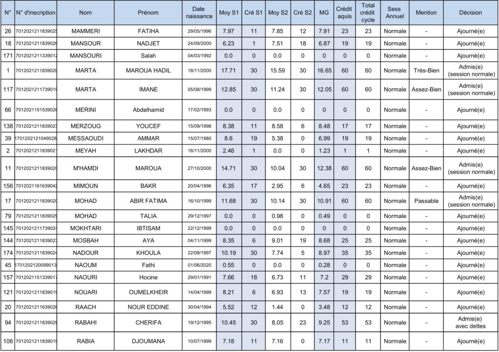 النتائج السنوية – للسنة أولى ماستر – اقتصاد نقدي وبنكي – علوم اقتصادية – بعد معالجة الطعون السنة الجامعية 2022/2021