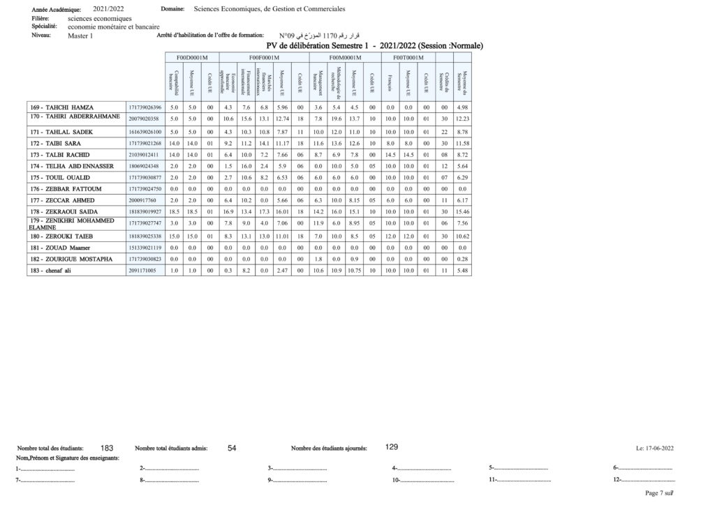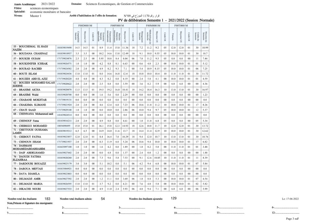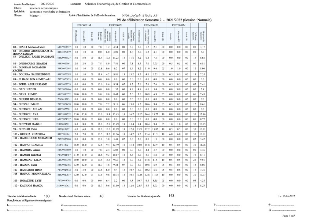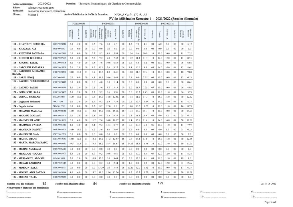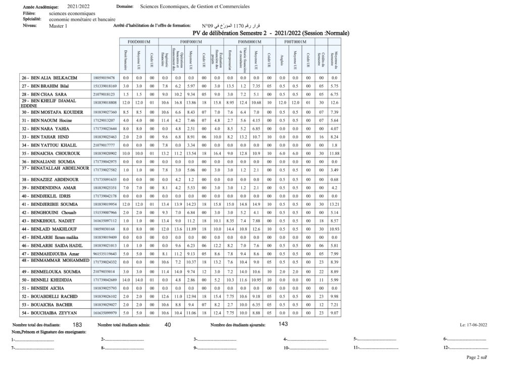 نتائج السداسيين 1+2 – للسنة أولى ماستر – اقتصادي نقدي وبنكي – بعد معالجة الطعون للسنة الجامعية 2022/2021