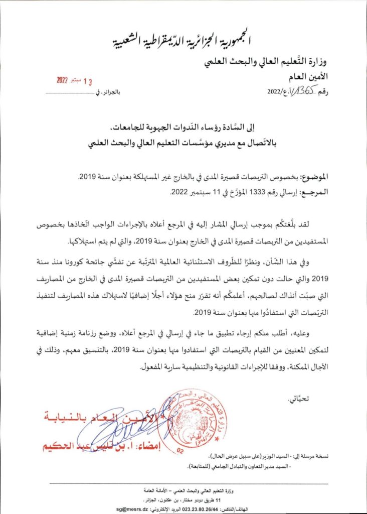 • Next story شرح المذكرة رقم 429 المؤرخة في 19 جويلية 2022، المتعلقة بتنظيم التكوين في الطور الثالث بعنوان السنة الجامعية 2022/2023