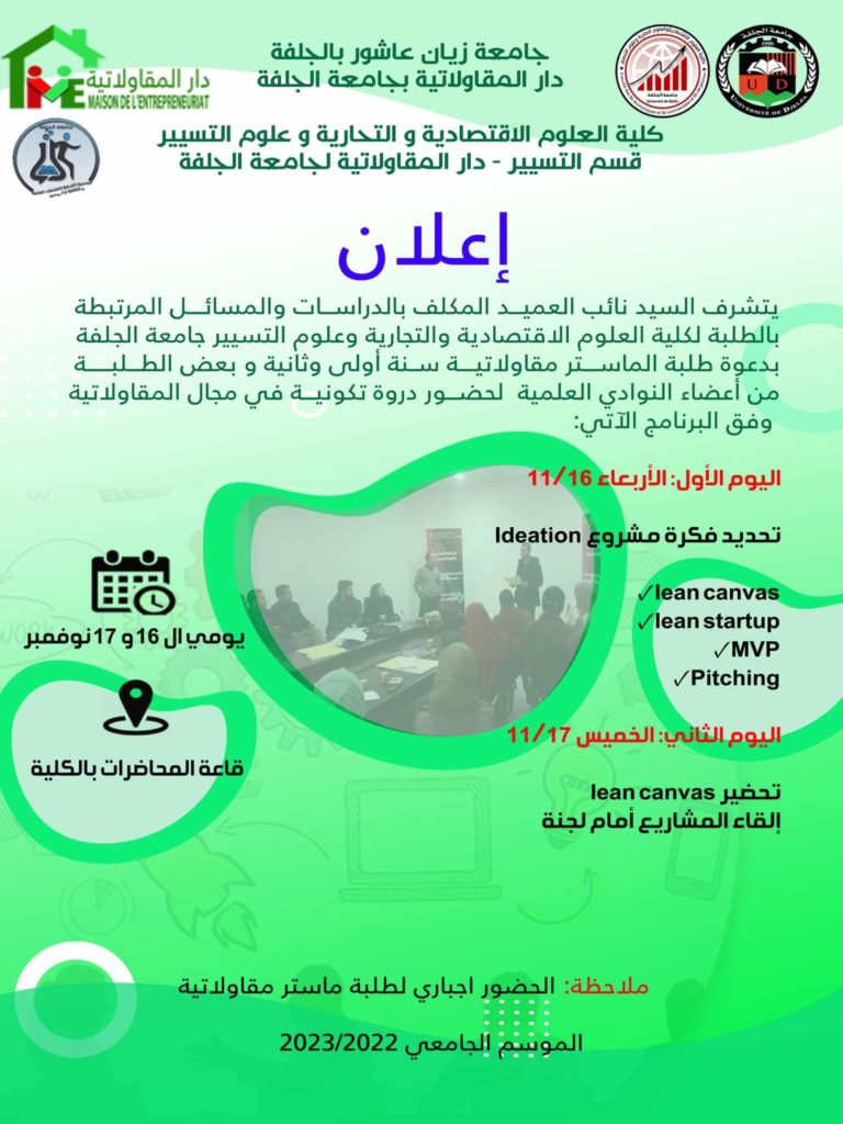 دورة تكوينية في مجال المقاولاتية من تنشيط خبراء دوليين، الدكتور حميدة فرحات والدكتور عبد الحميد نعيجات
