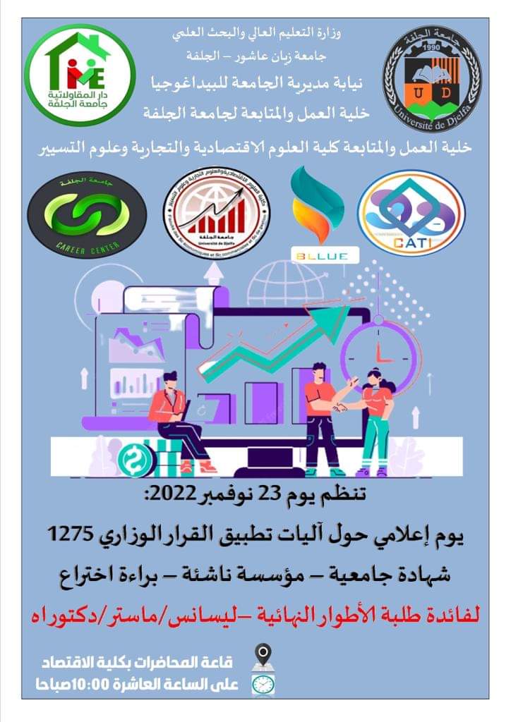 يوم اعلامي حول الية تطبيق القرار الوزار 1275 المتعلق بمذكرة تخرج مؤسسة ناشئة، مذكرة تخرج براءة اختراع