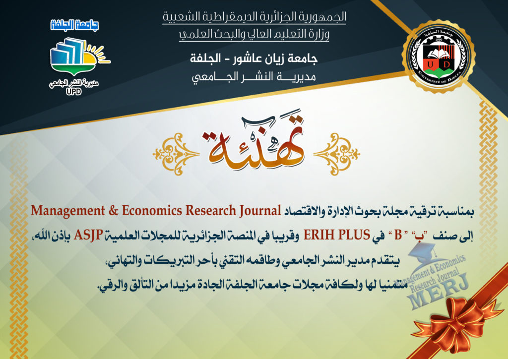 تهنئة بمناسبة ترقية مجلة بحوث الإدارة والاقتصاد الصادرة عن جامعة الجلفة