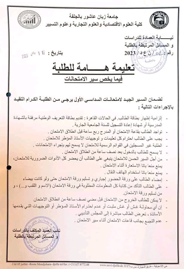 تعليمة هامة للطلبة فيما يخص سير الامتحانات