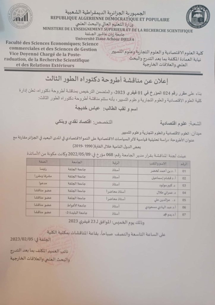 الندوة الوطنية حول مستقبل التوازنات المالية في الجزائر في ظل تذبذب أسعار البترول – مع تحليل البدائل والاستراتيجيات الكفيلة بتحقيق الإقلاع الاقتصادي- 02 أكتوبر2019