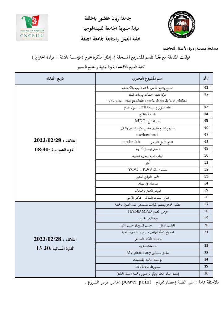 • نشاطات دار المقاولاتية بجامعة الجلفة
