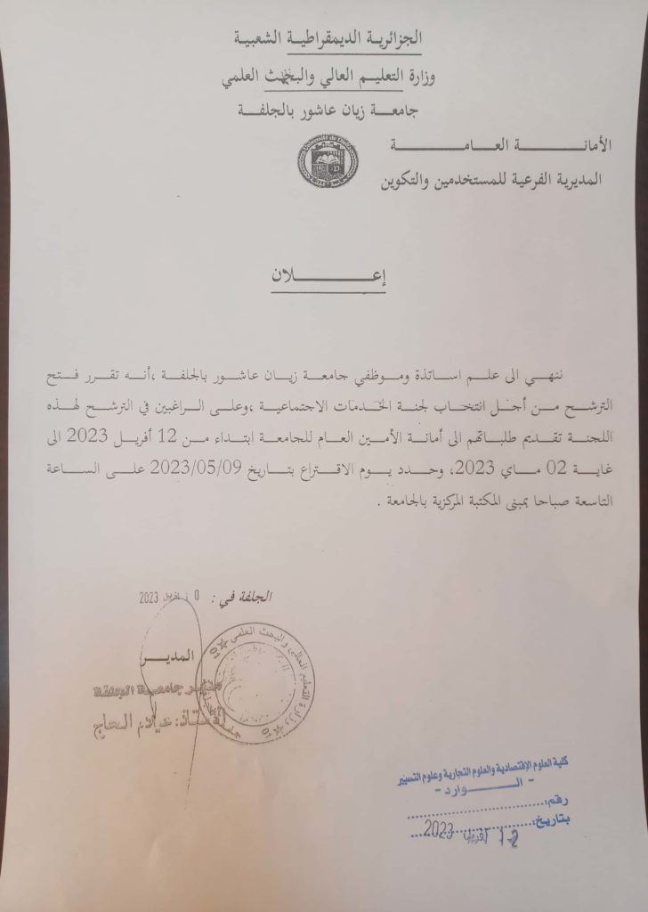 رئاسة الجامعـة : contact@univ-djelfa.dz