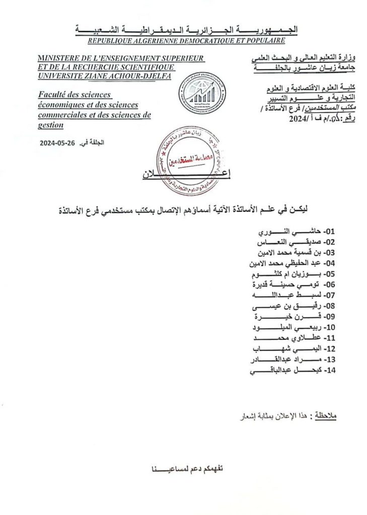 رئاسة الجامعـة : contact@univ-djelfa.dz
