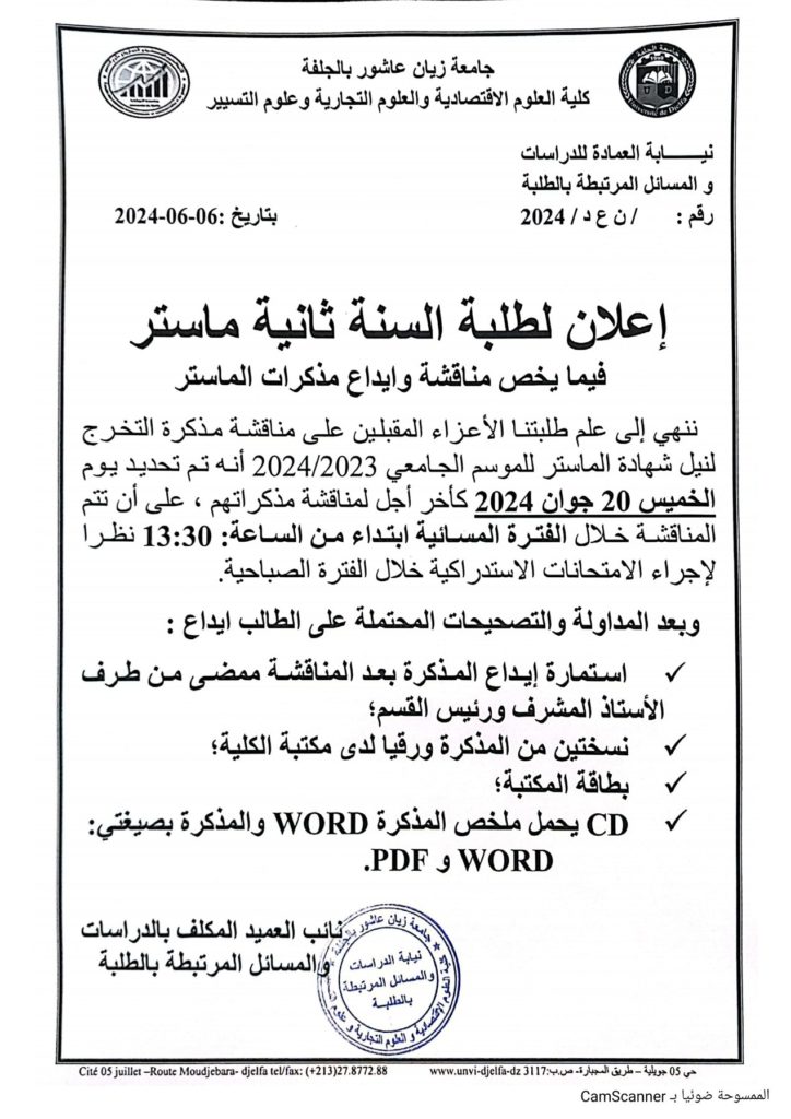 • بخصوص التسجيل في الطور الثاني ماستر فئة 20 % و DEUA آجال التسجيل و ملف التسجيل.