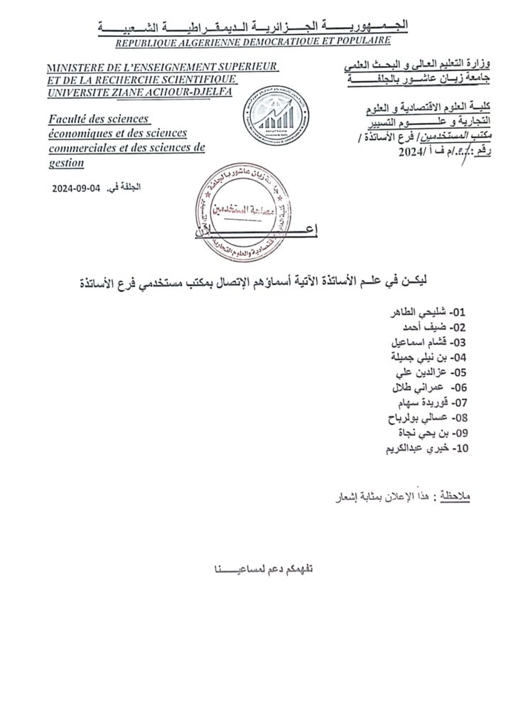 رئاسة الجامعـة : contact@univ-djelfa.dz