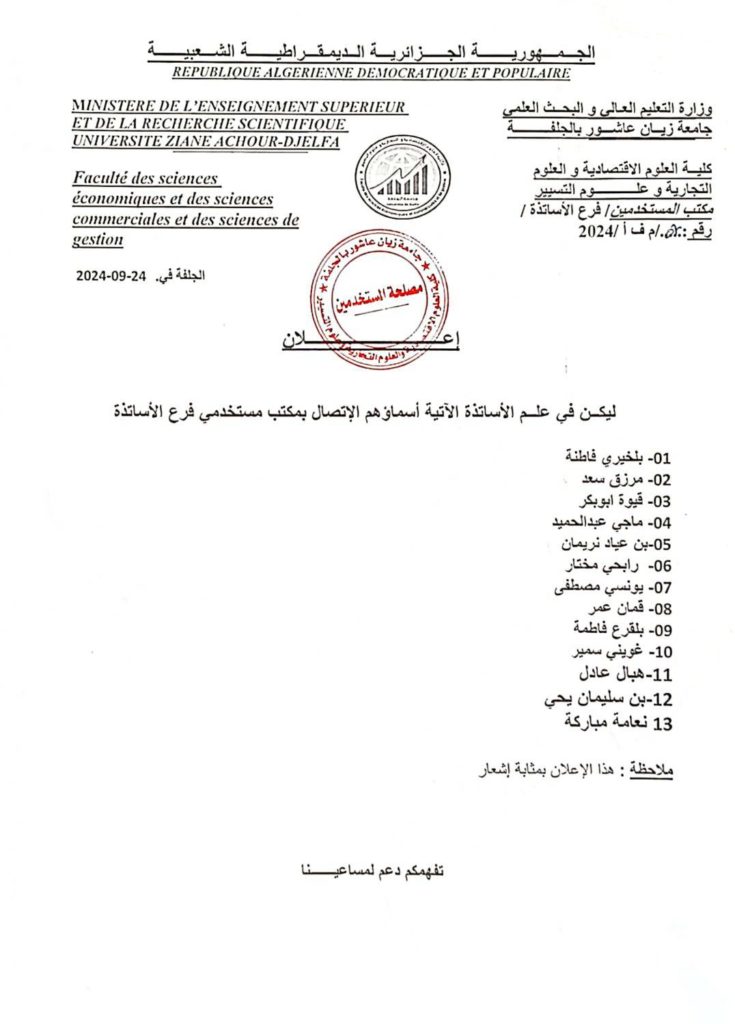 رئاسة الجامعـة : contact@univ-djelfa.dz