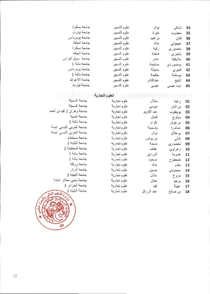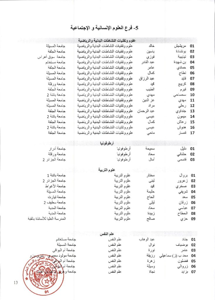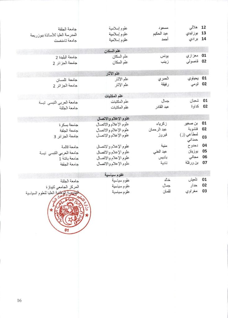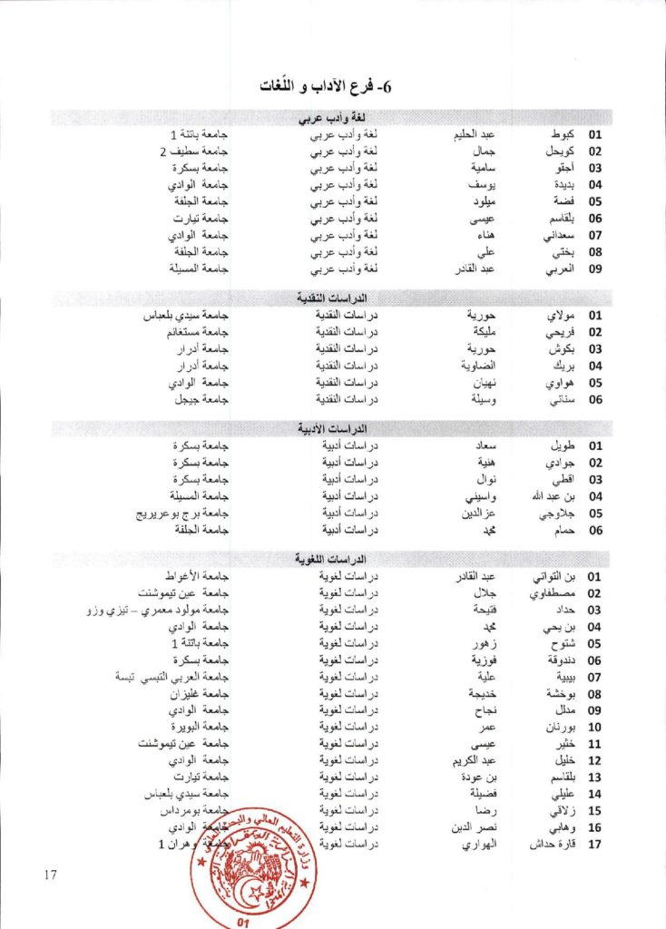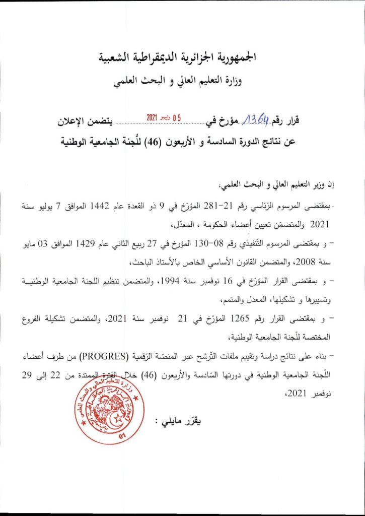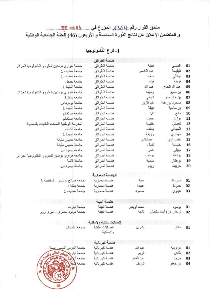 نتائج الدورة السادسة والاربعون (46) للجنة الجامعية الوطنية