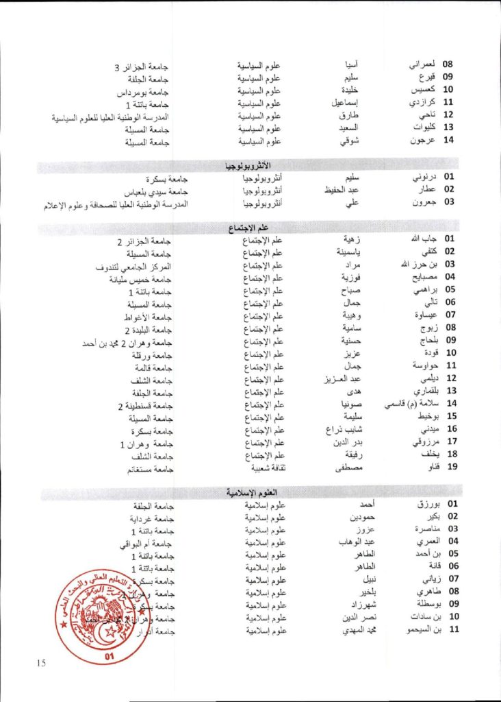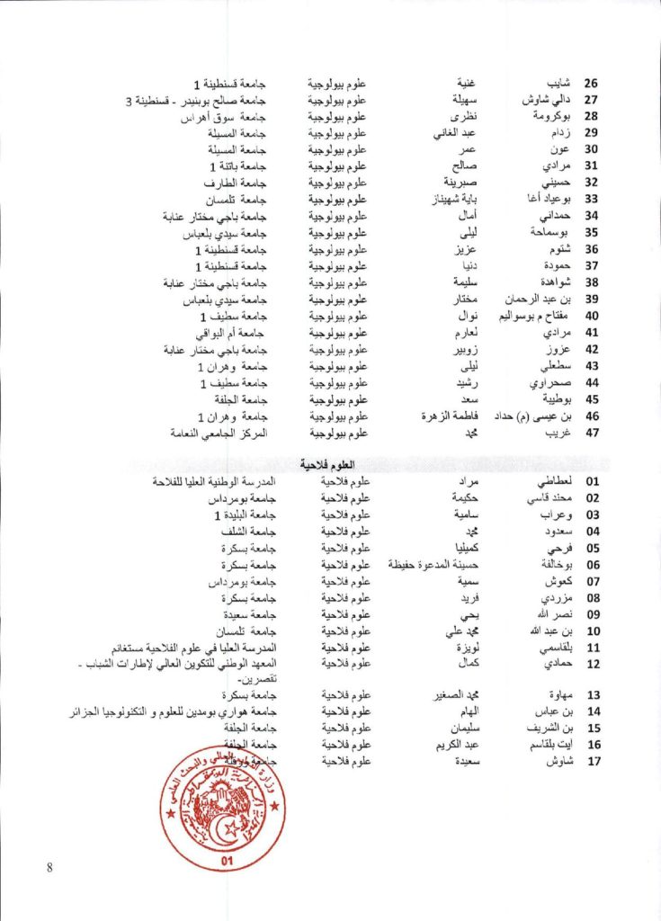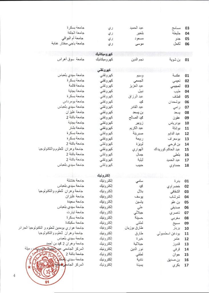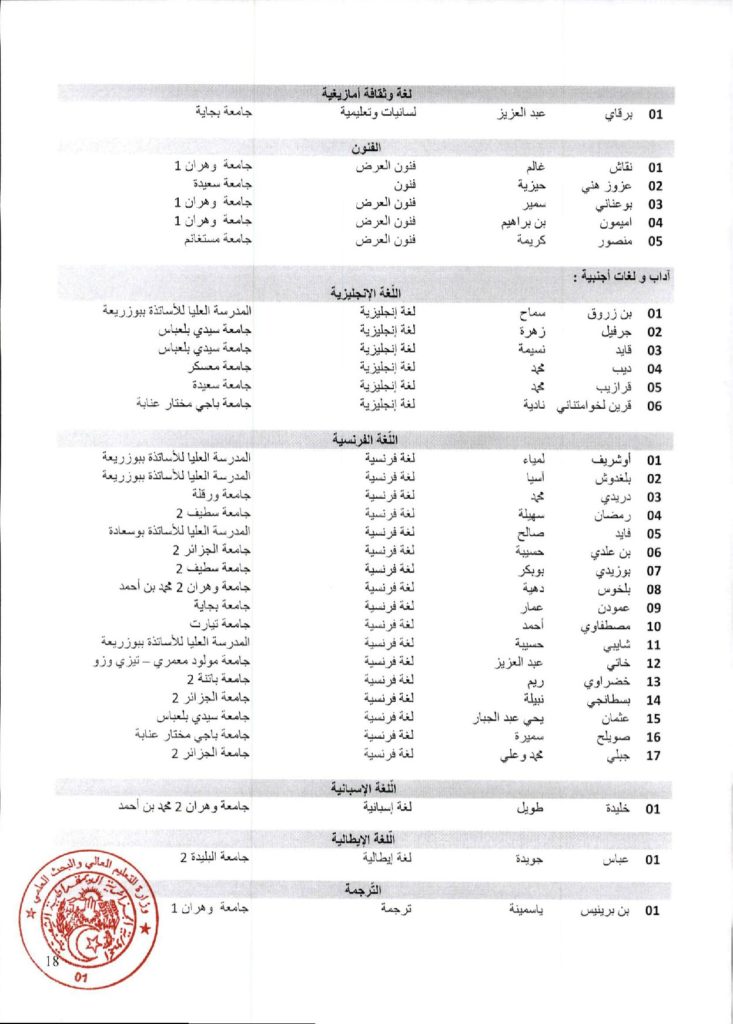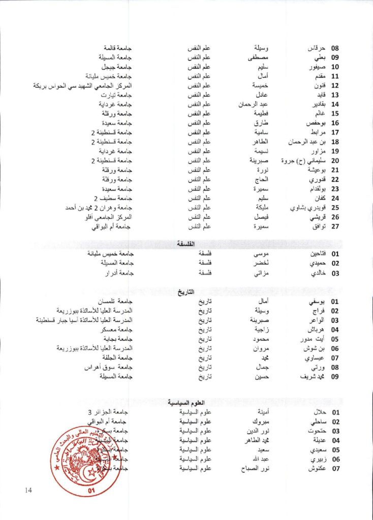 نتائج الدورة السادسة والاربعون (46) للجنة الجامعية الوطنية