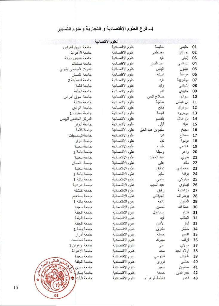 • توقيت الدراسة للموسم الجامعي :2026/2025 كلية العلوم الاقتصادية