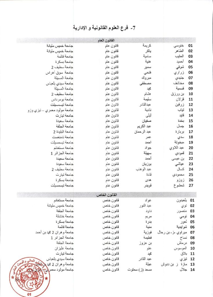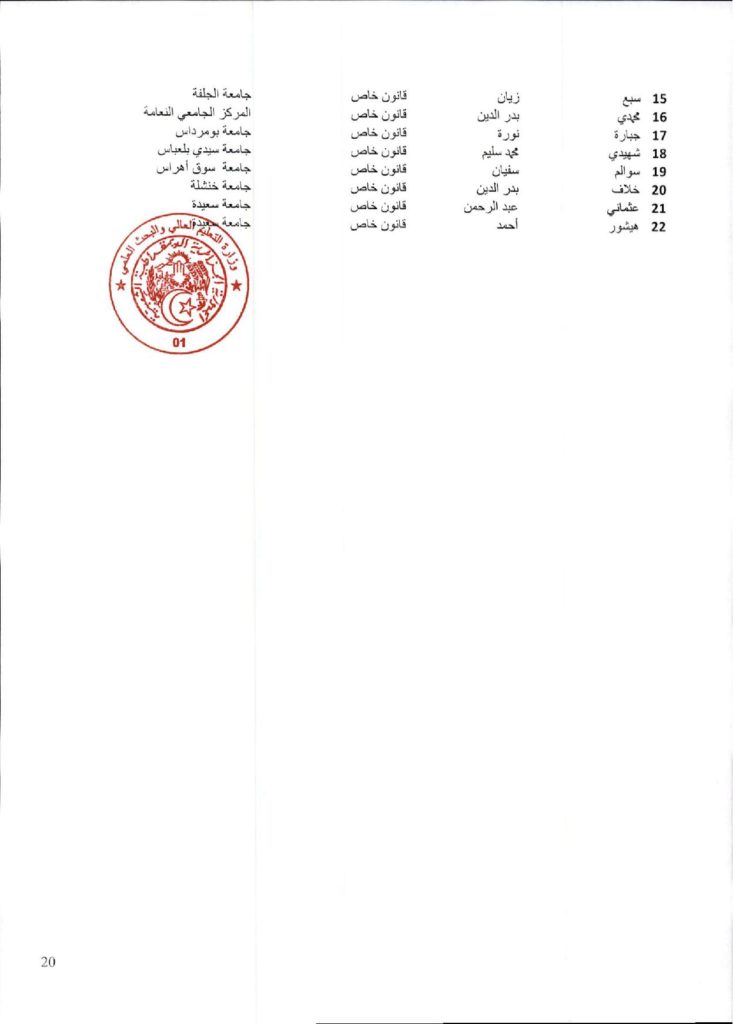 • قائمة المقبولين للتسجيل في السنة الأولى ماستر (فئة 20 %) و DEUA للسنة الجامعية 2025- 2026 .