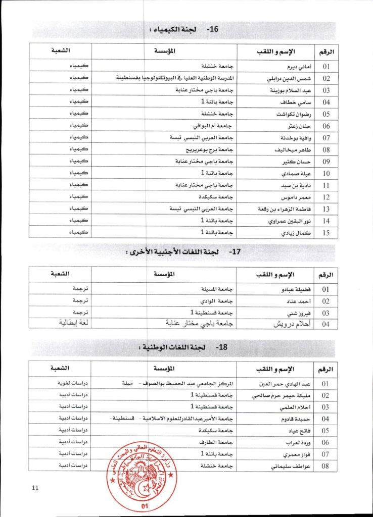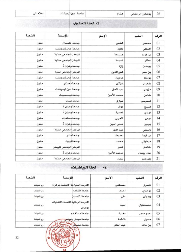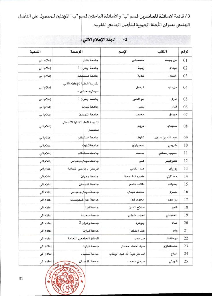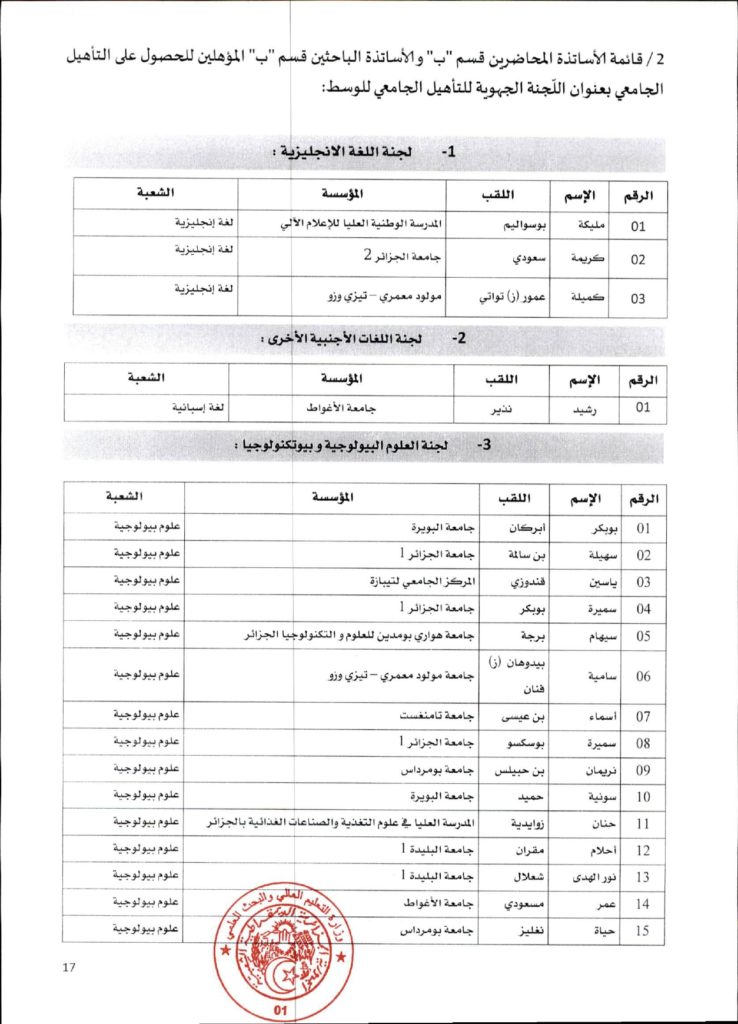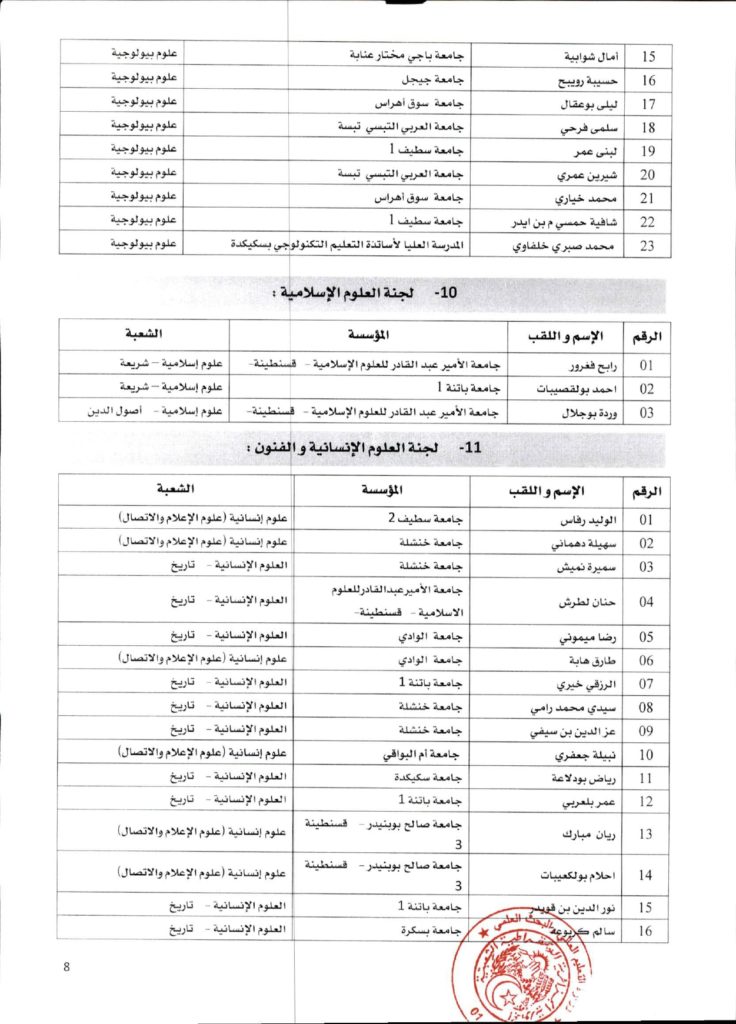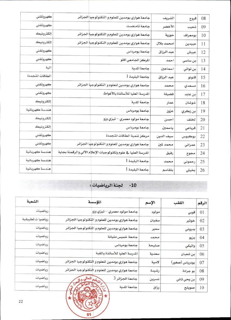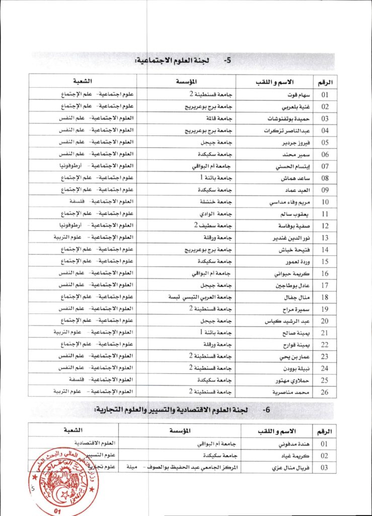 قرار وزاري رقم 1361 مؤرخ في 02 ديسمبر 2021 يتضمن الإعلان عن نتائج الدورة الأولى للحصول على التأهيل الجامعي