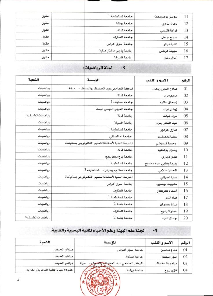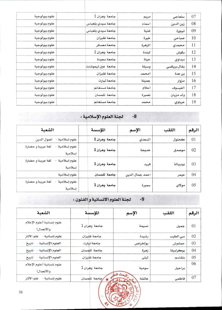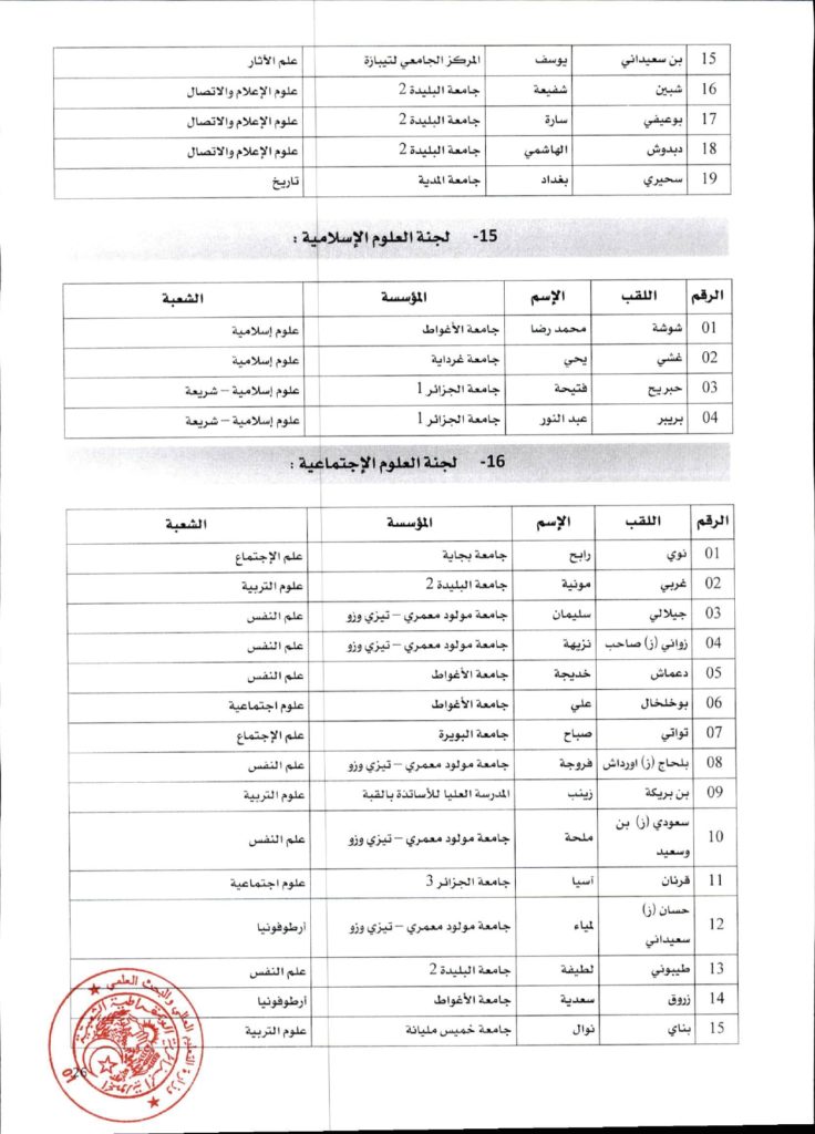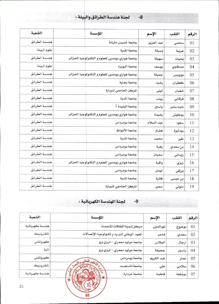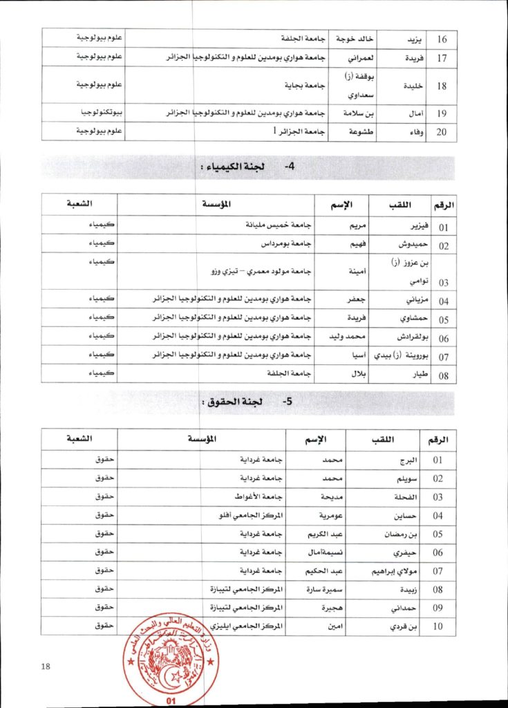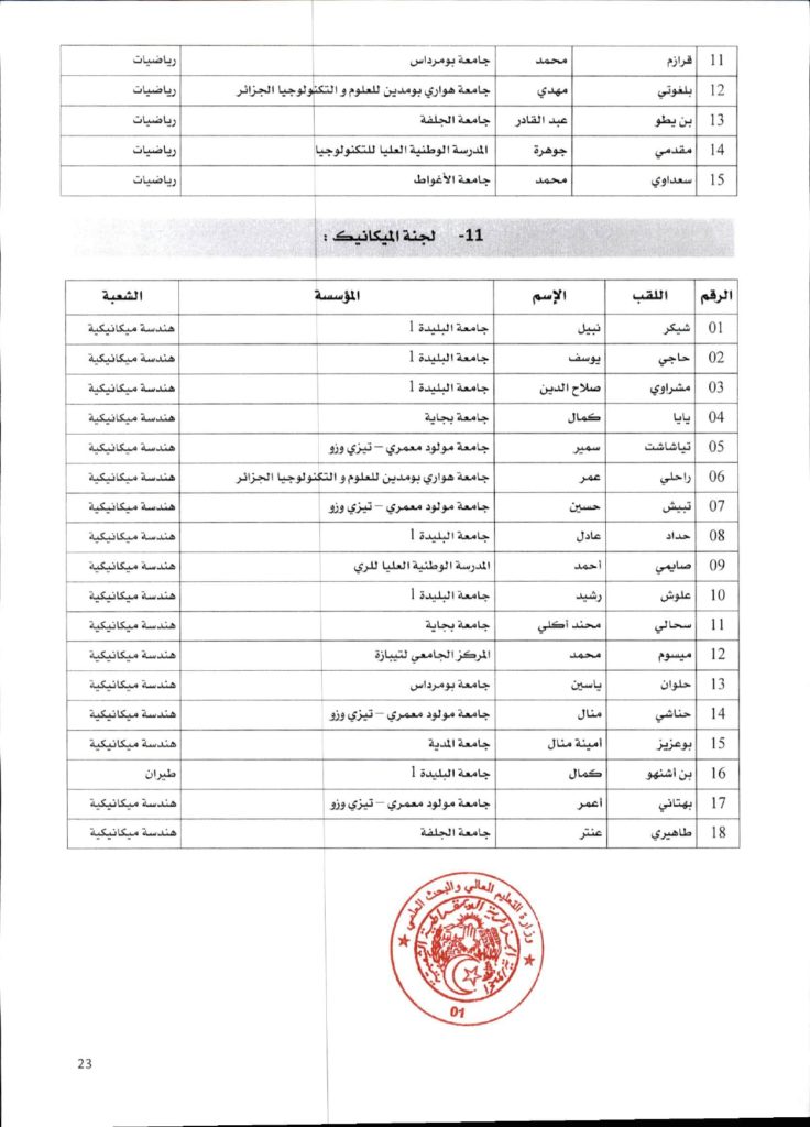 قرار وزاري رقم 1361 مؤرخ في 02 ديسمبر 2021 يتضمن الإعلان عن نتائج الدورة الأولى للحصول على التأهيل الجامعي