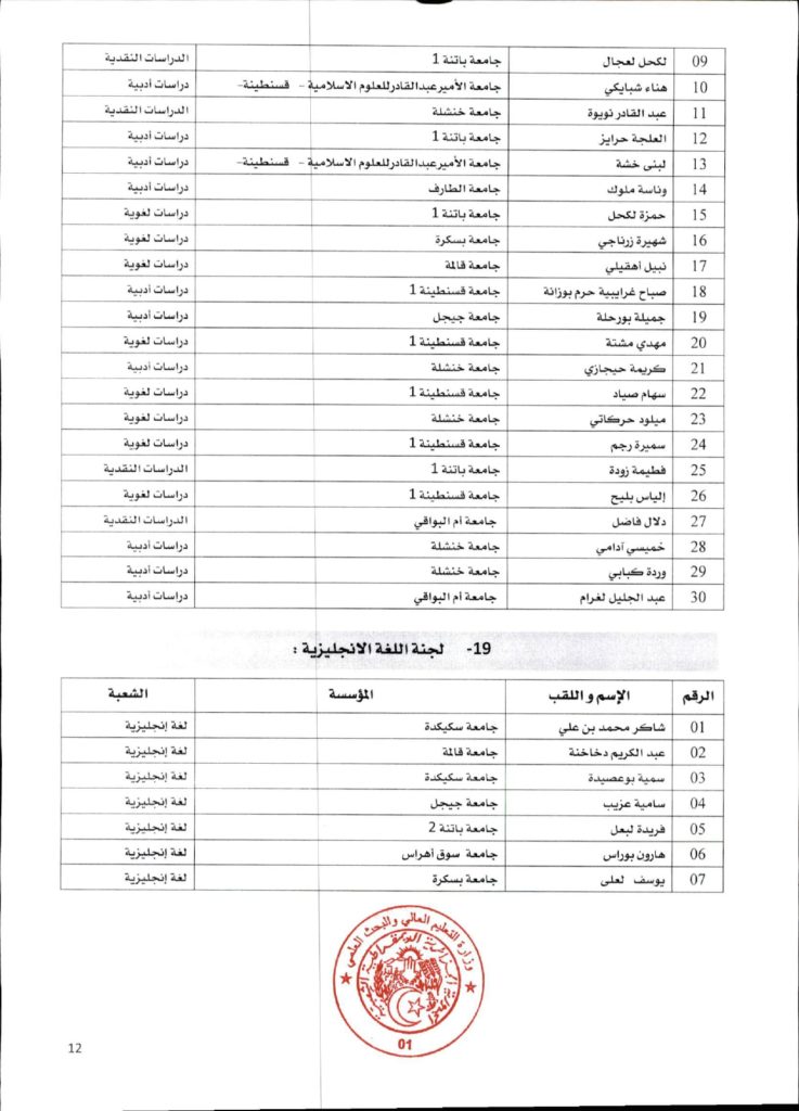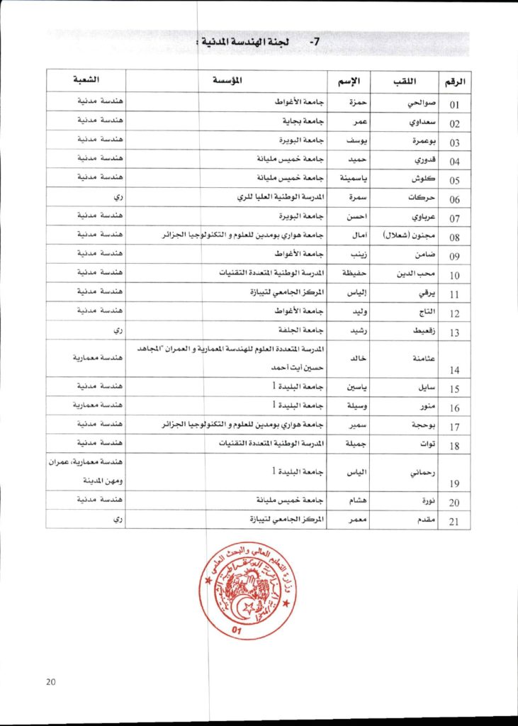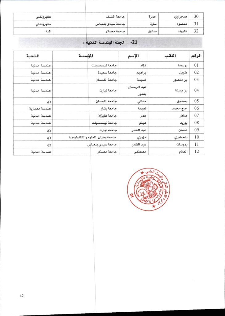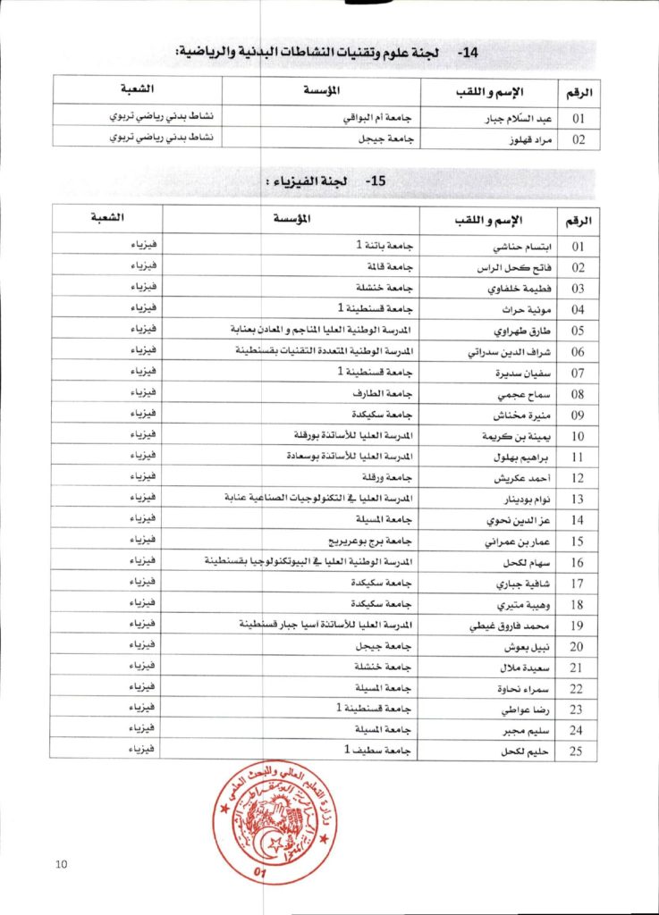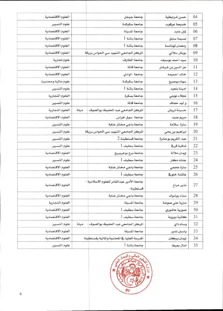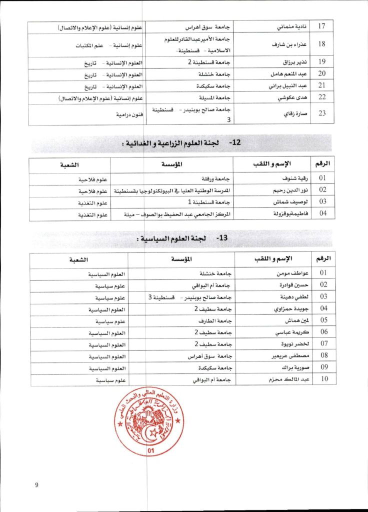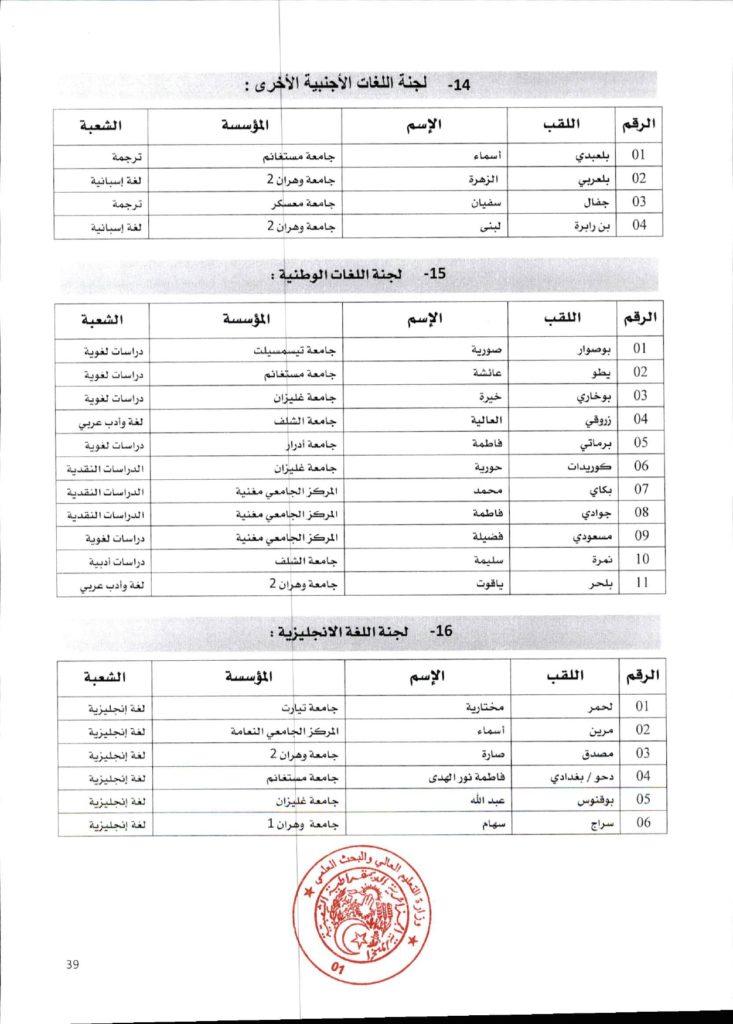 قرار وزاري رقم 1361 مؤرخ في 02 ديسمبر 2021 يتضمن الإعلان عن نتائج الدورة الأولى للحصول على التأهيل الجامعي