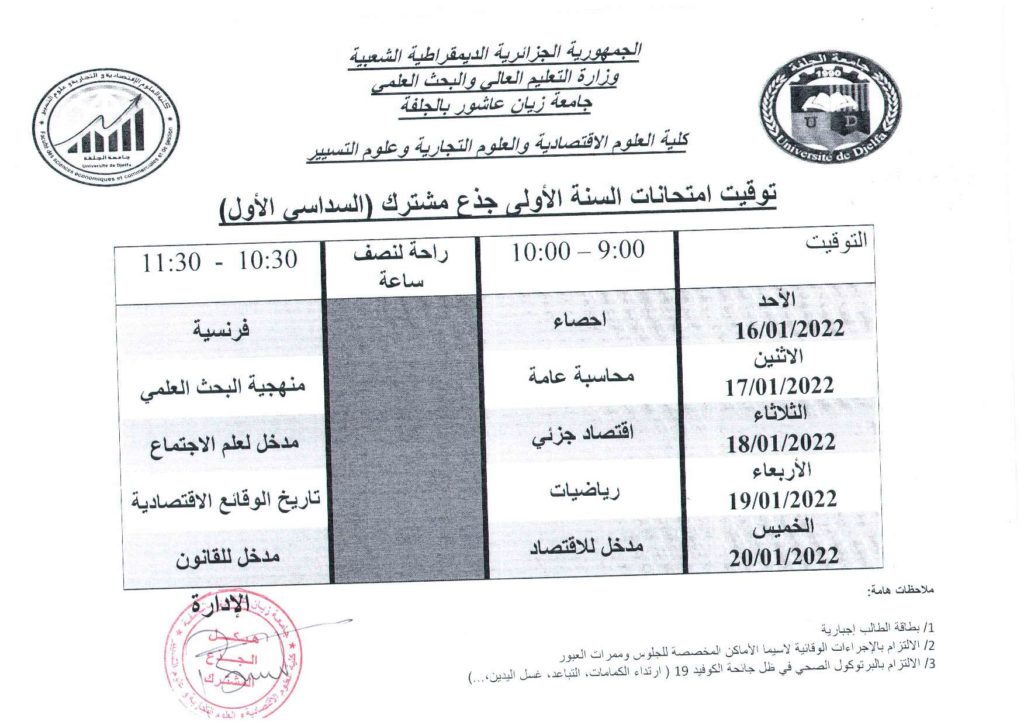 توقيت إمتحانات السنة أولى جذع مشترك (السداسي الأول) مع توزيع الطلبة على القاعات في الامتحانات توزيع الطلبة على القاعات في الامتحانات محاضر-الامتحاناتsتنزيل