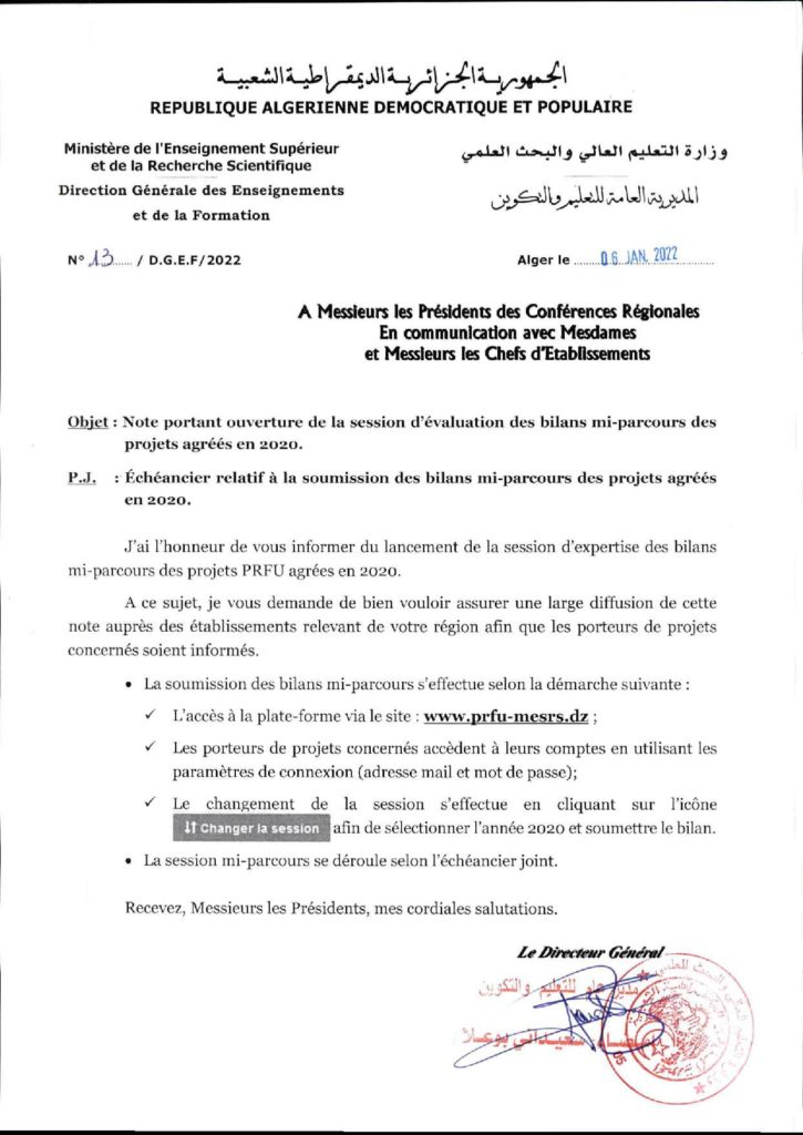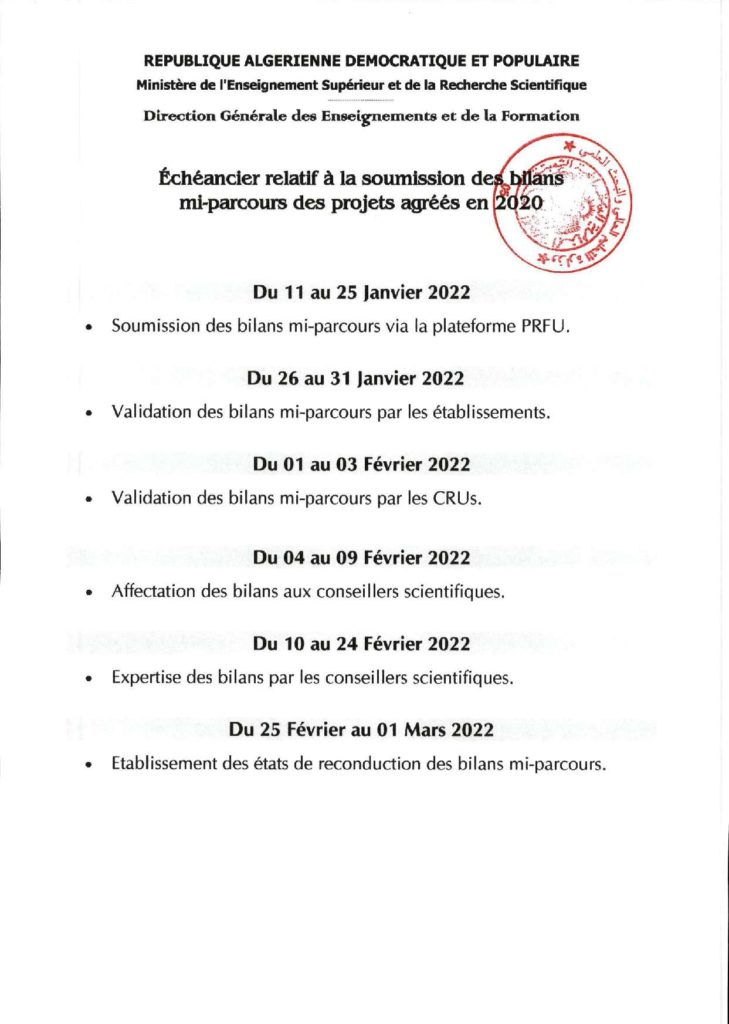 (تذكير) فتح دورة تقييم حصائل البحث المرحلية للمشاريع المعتمدة سنة 2020