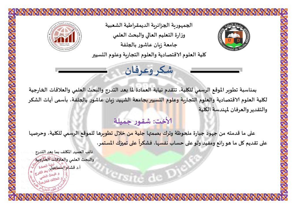 كلية العلوم الاقتصادية والتجارية وعلوم التسيير جامعة الجلفة ©2021