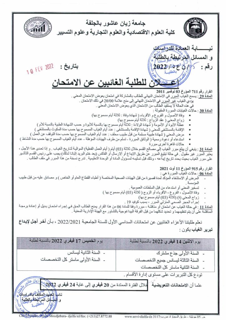 رئاسة الجامعـة : contact@univ-djelfa.dz