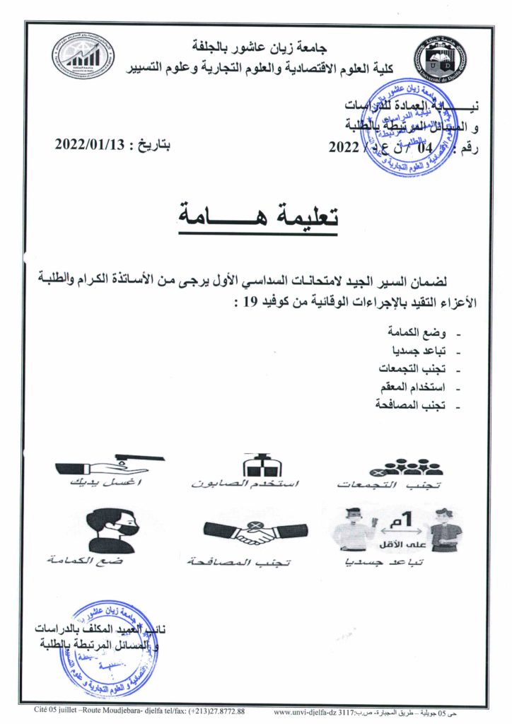 رئاسة الجامعـة : contact@univ-djelfa.dz