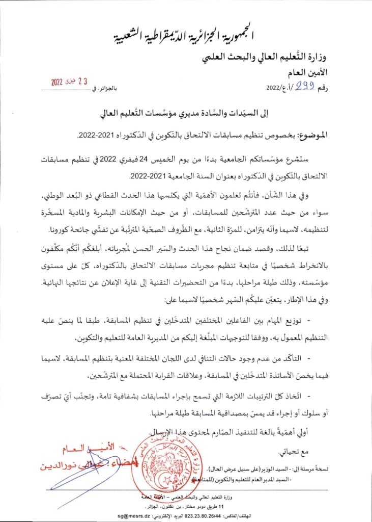 تنظيم مسابقات الالتحاق بالتكوين في الدكتوراه 2022/2021