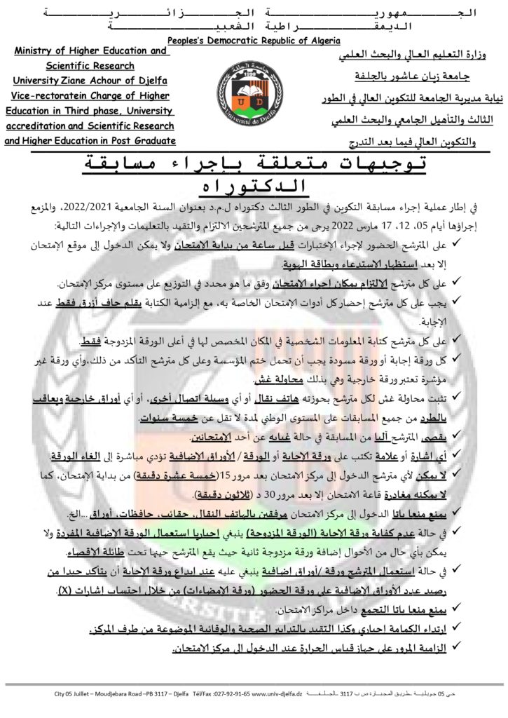 توجيهات متعلقة باجراء المسابقة الدكتوراه
