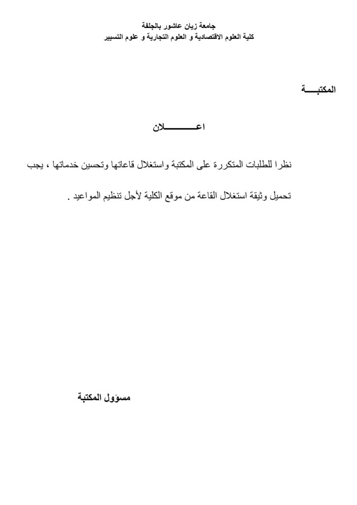 تحميل وثيقة استغلال القاعة