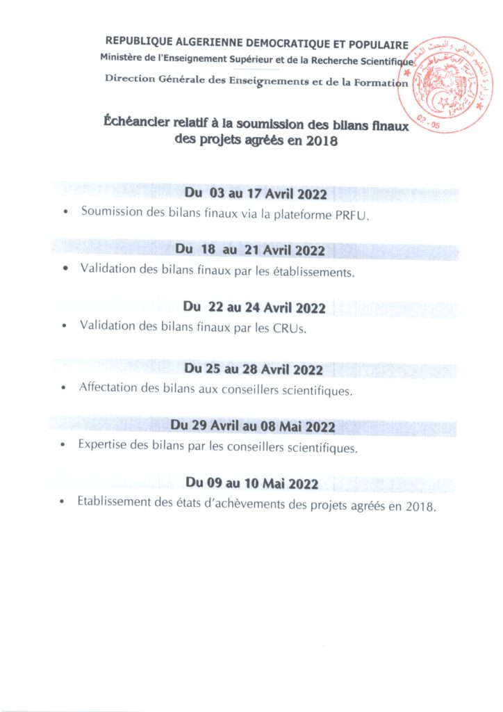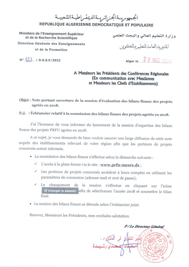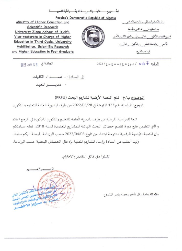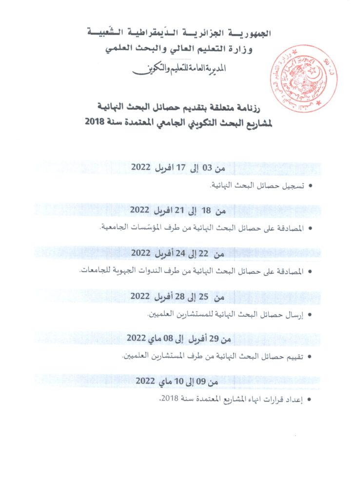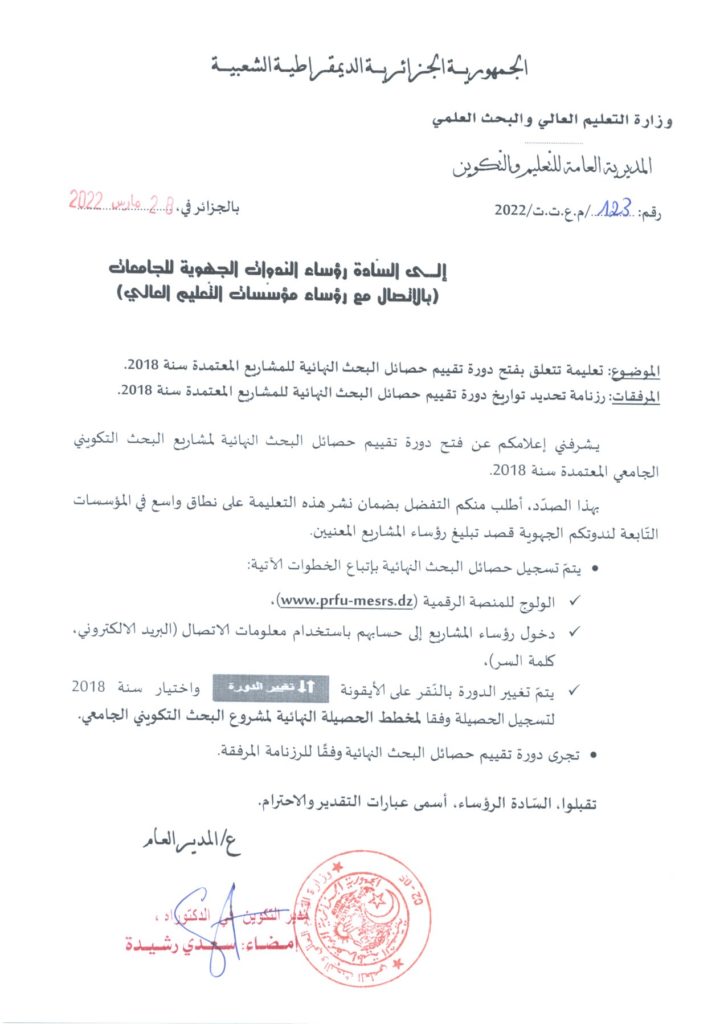إعلان للسادةالأساتذة رؤساء المشاريع البحثية لسنة 2018