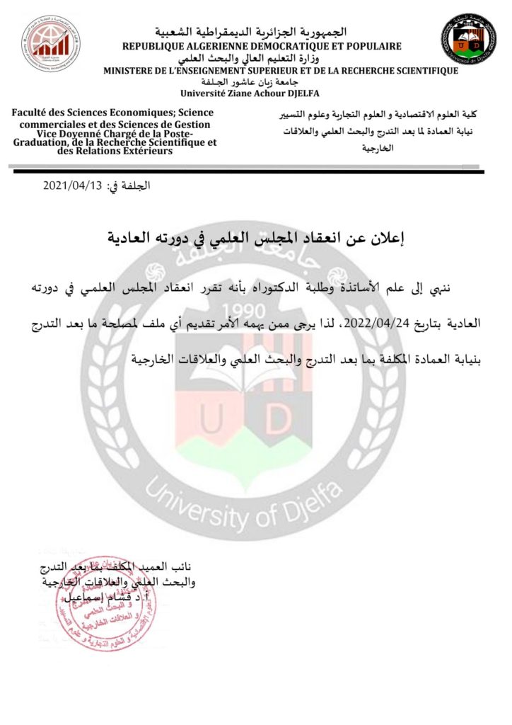 إعلان عن إنعقاد المجلس العلمي في دورته العادية