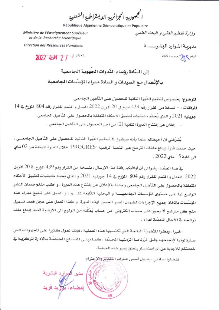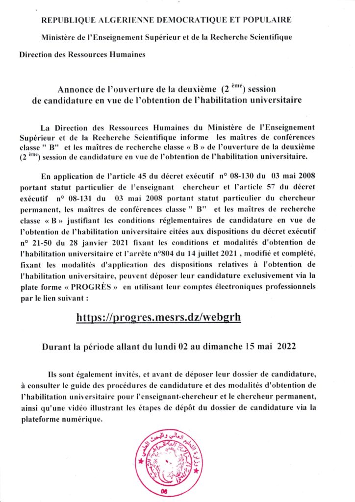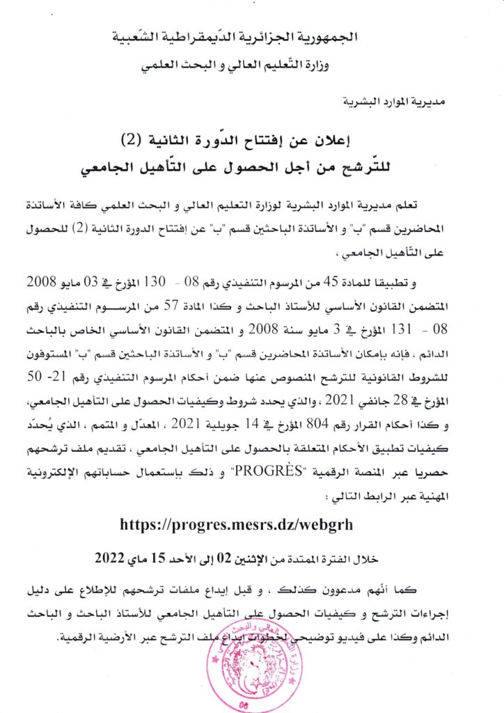 إعلان عن إفتتاح الدورة الثانية (02) من أجل الحصول على التأهيل الجامعي
