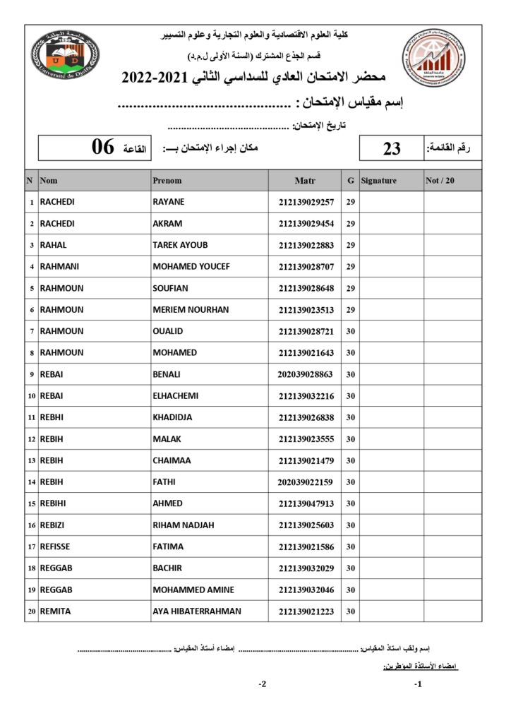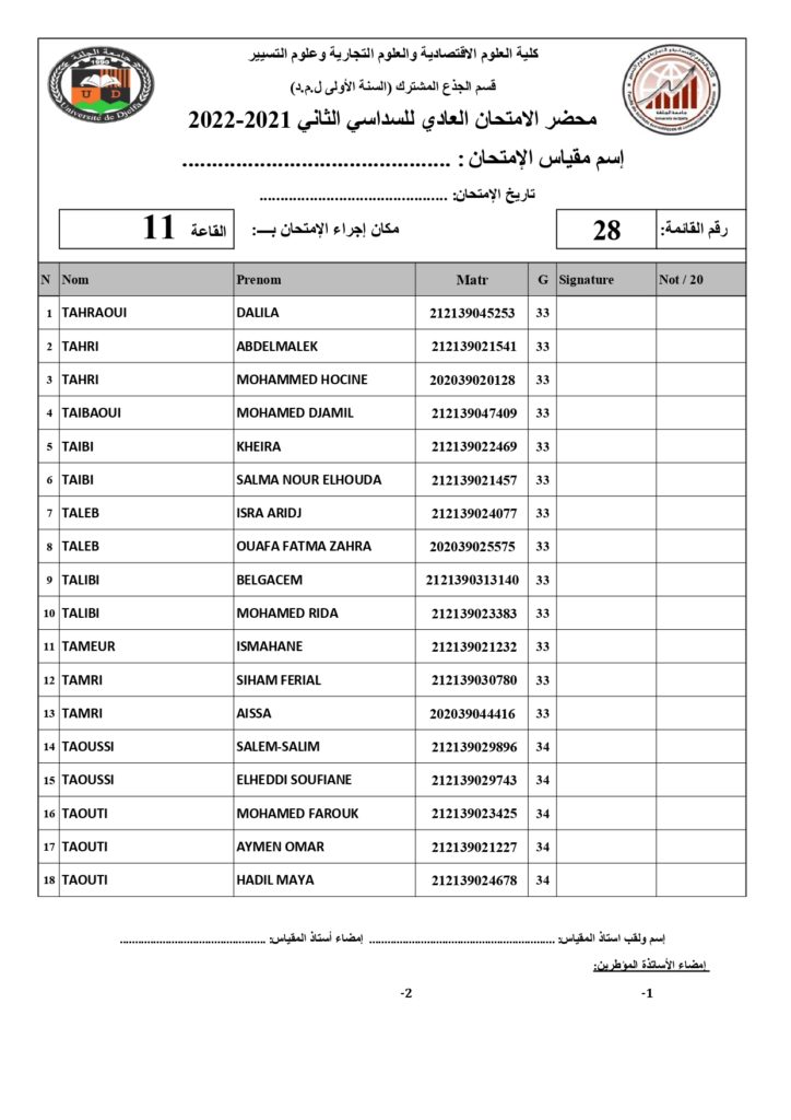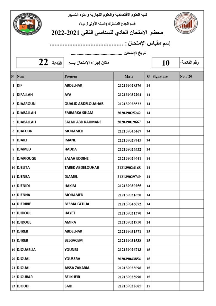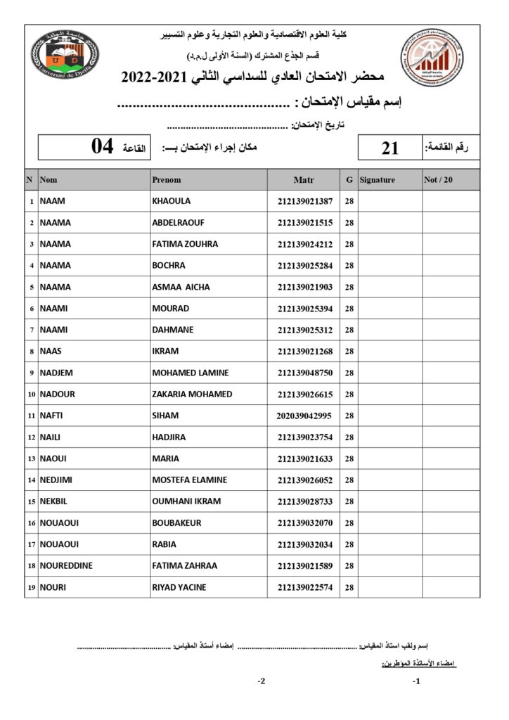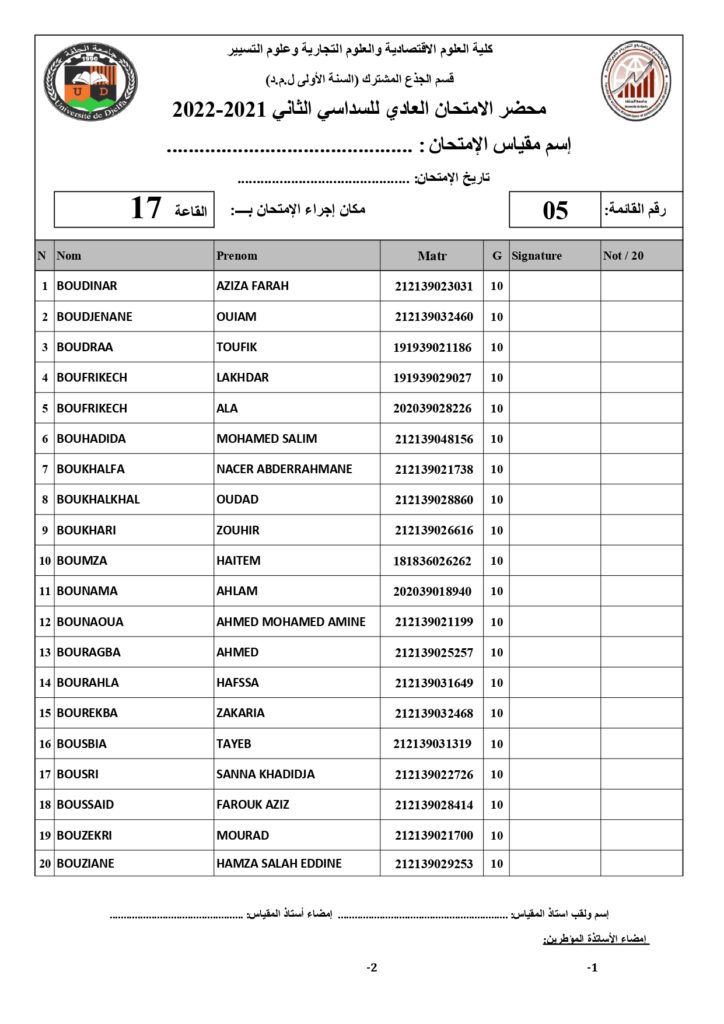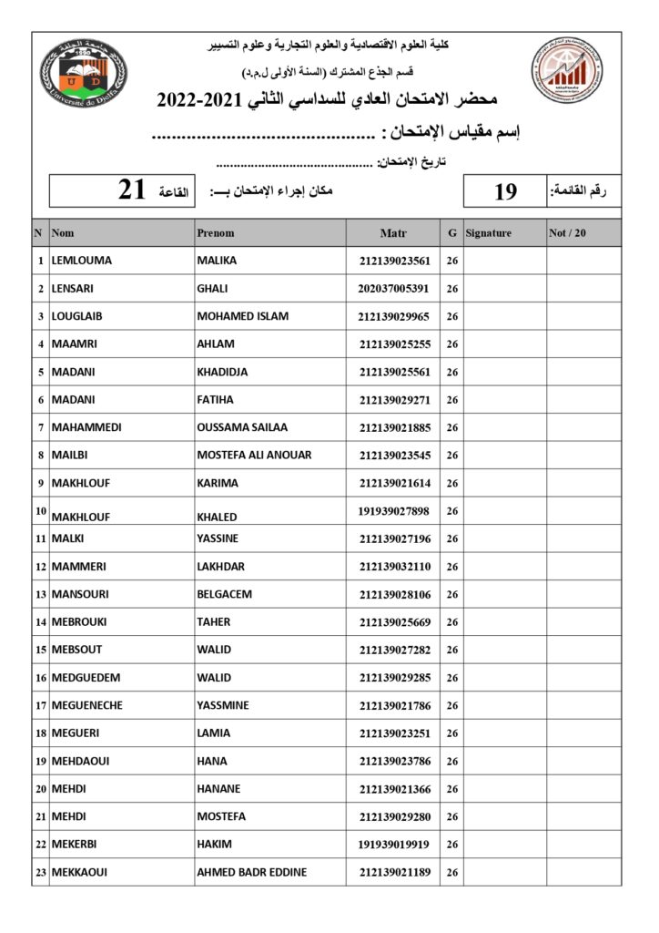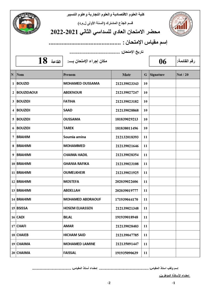 رزنامة امتحانات السداسي الثاني السنة أولى جذع مشترك للسنة الجامعية 2022/2021 +أماكن توزيع قاعات الإمتحان