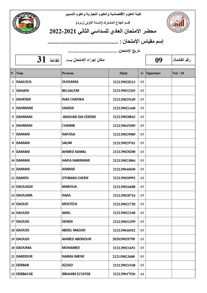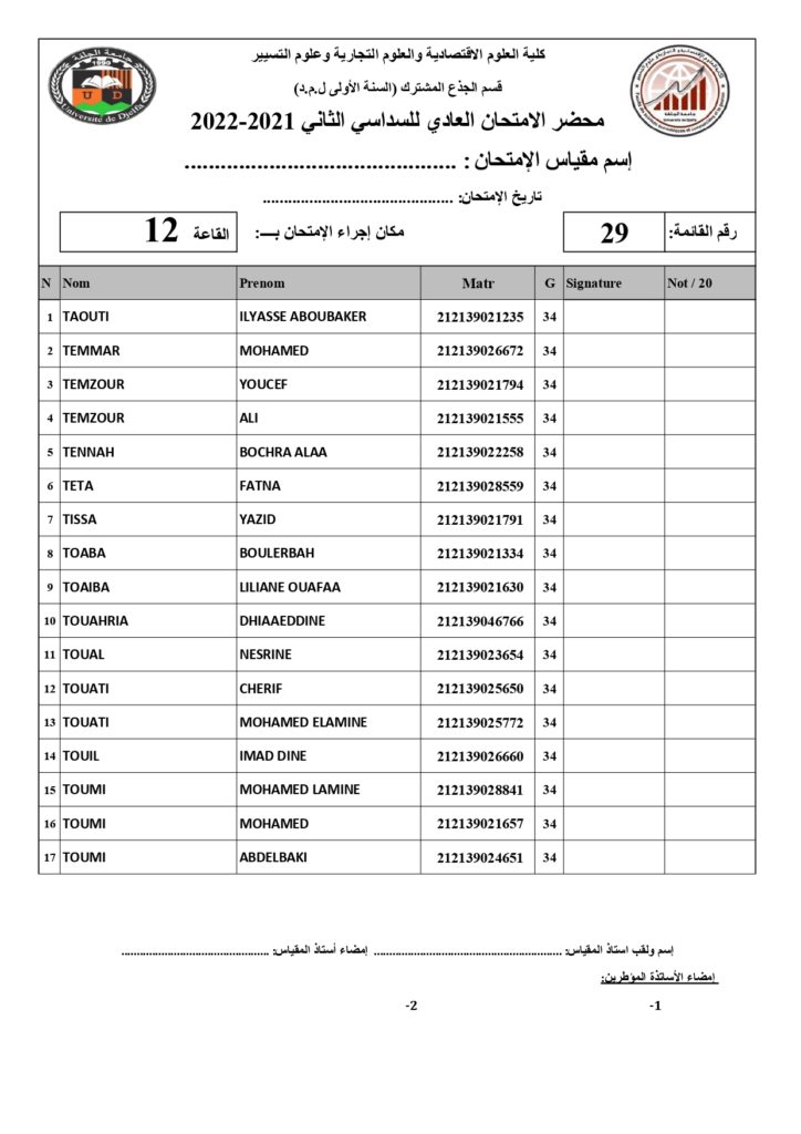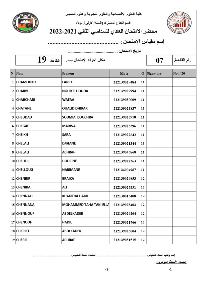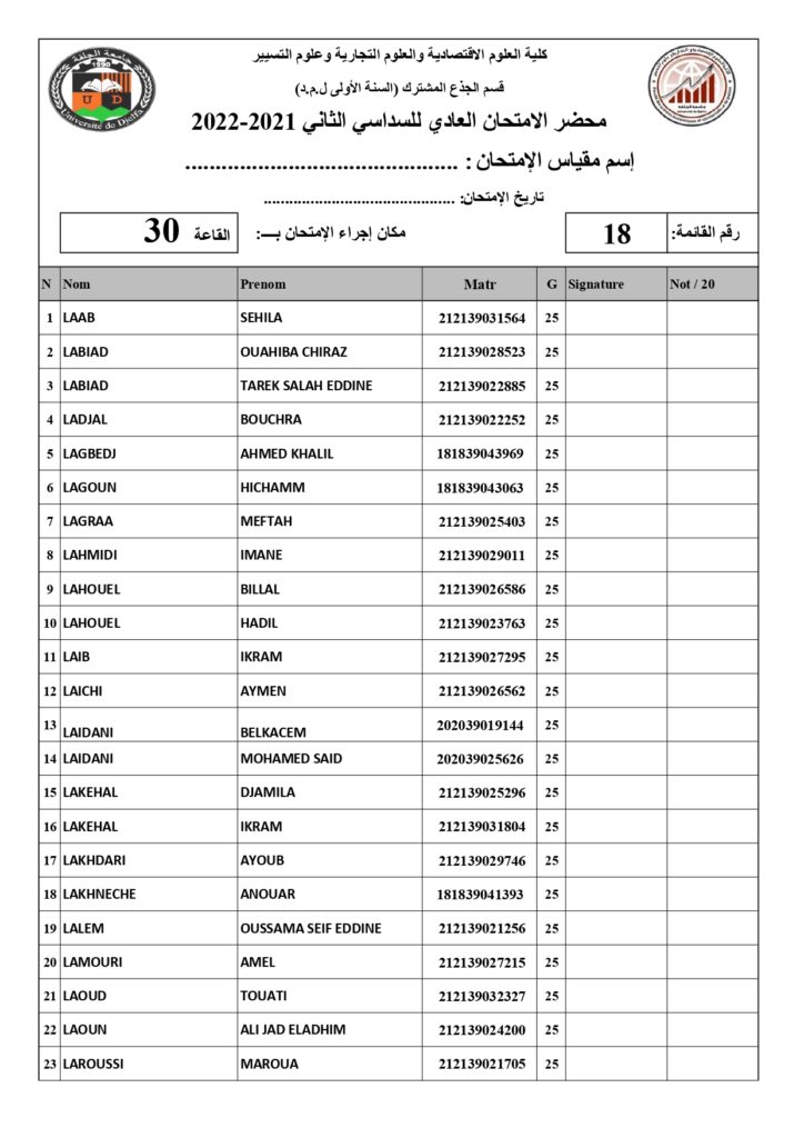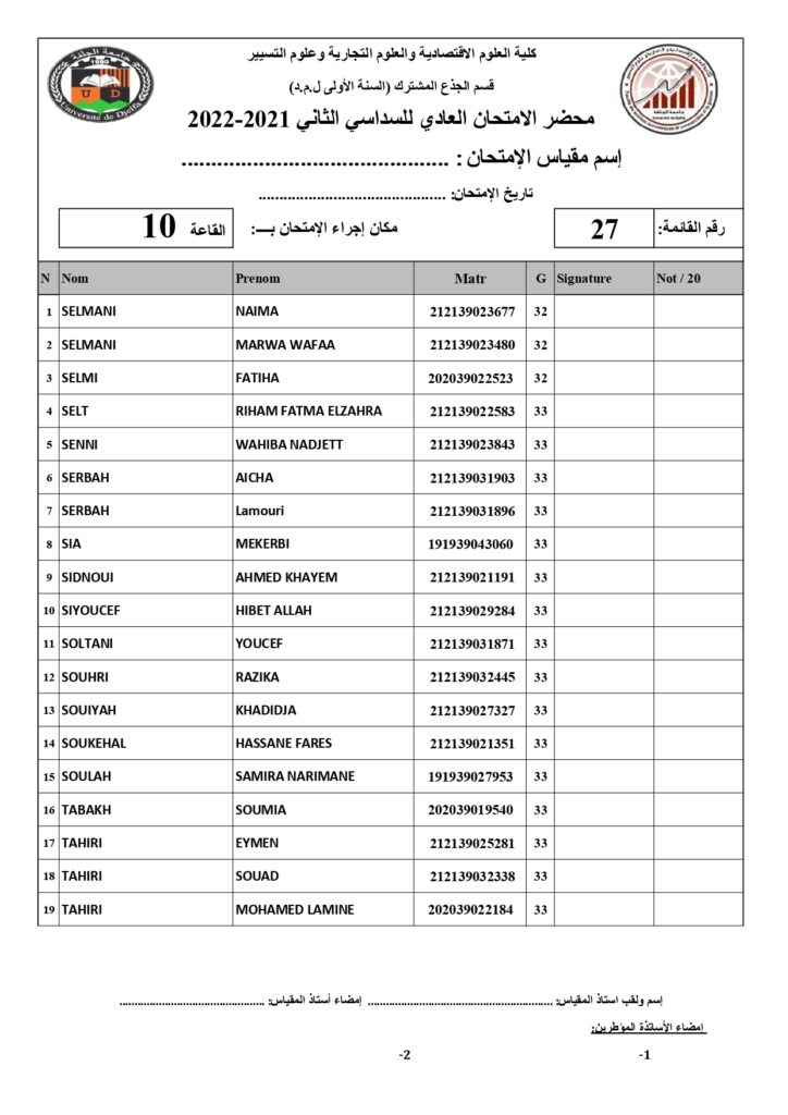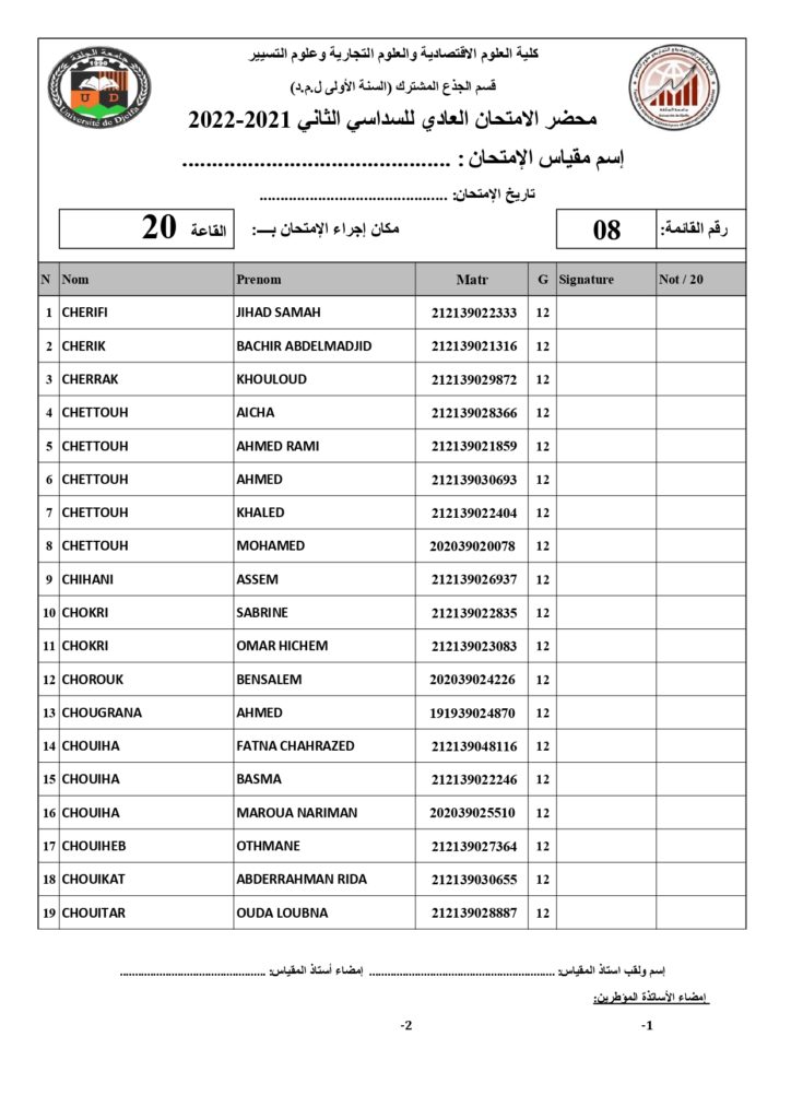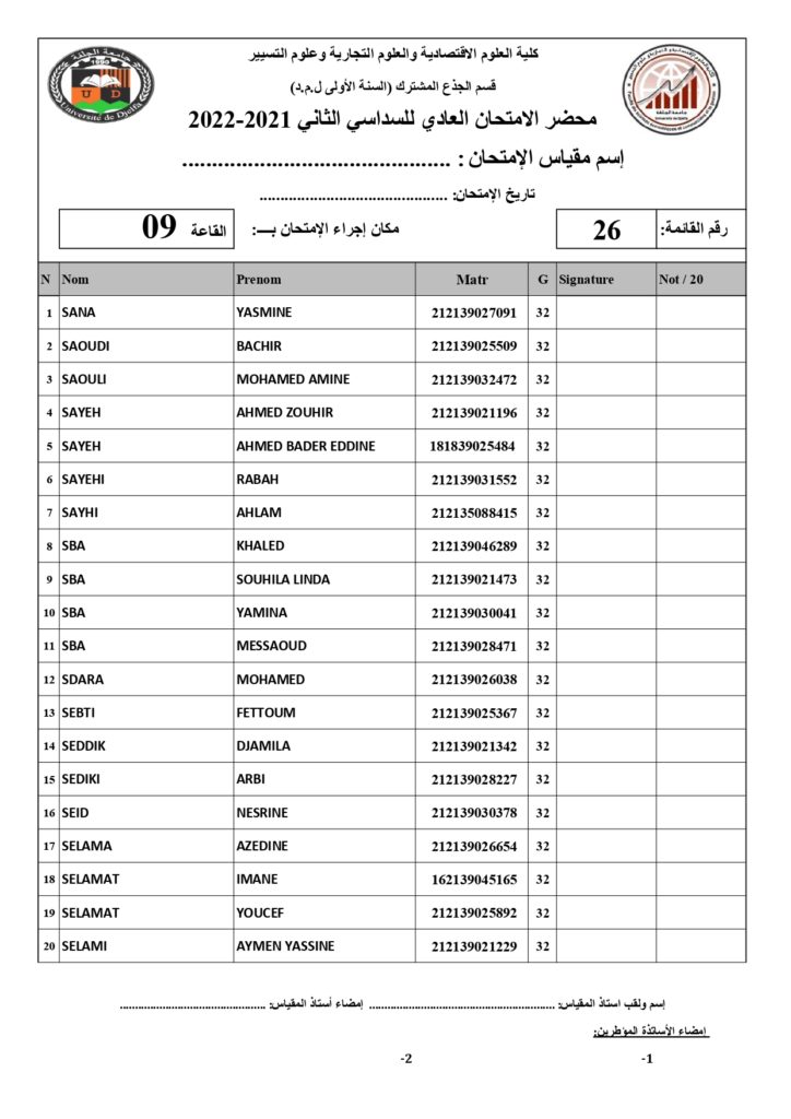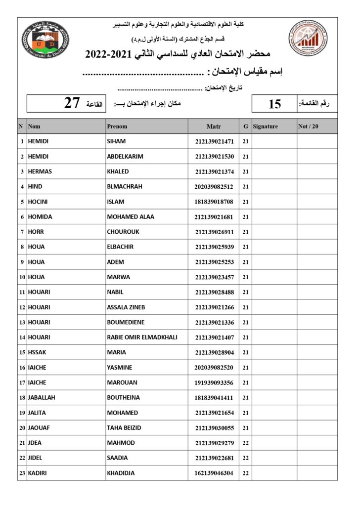 رزنامة امتحانات السداسي الثاني السنة أولى جذع مشترك للسنة الجامعية 2022/2021 +أماكن توزيع قاعات الإمتحان