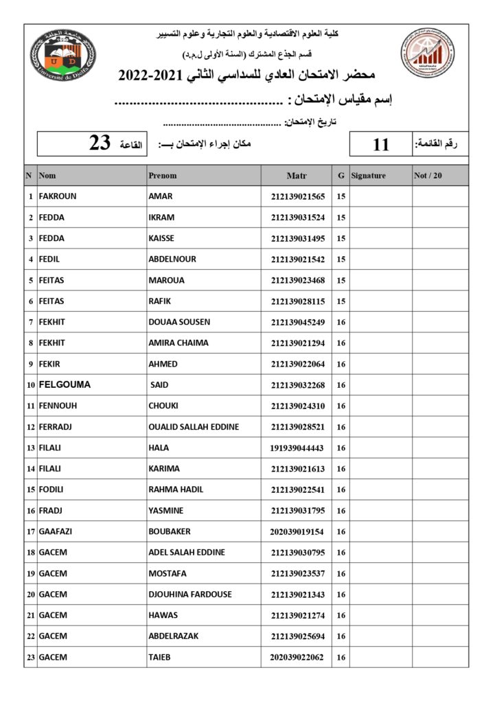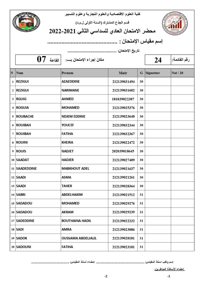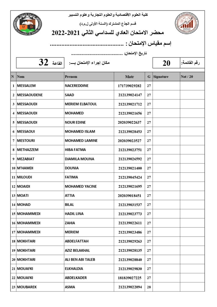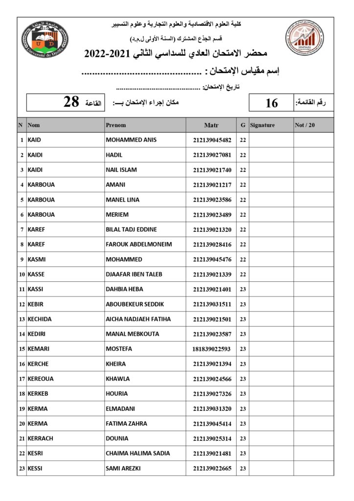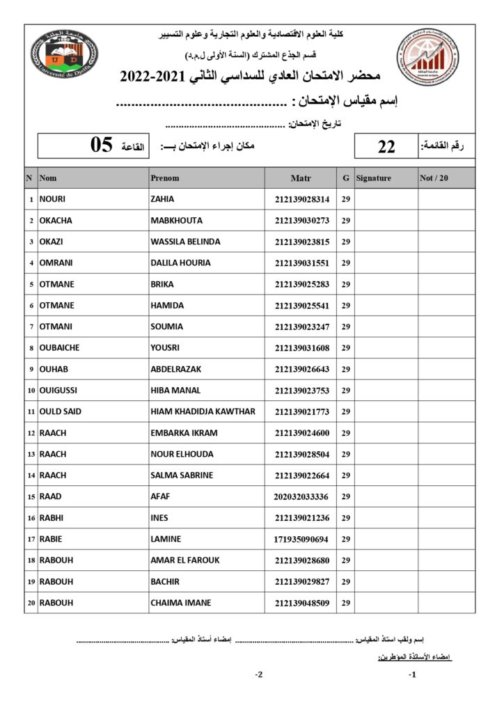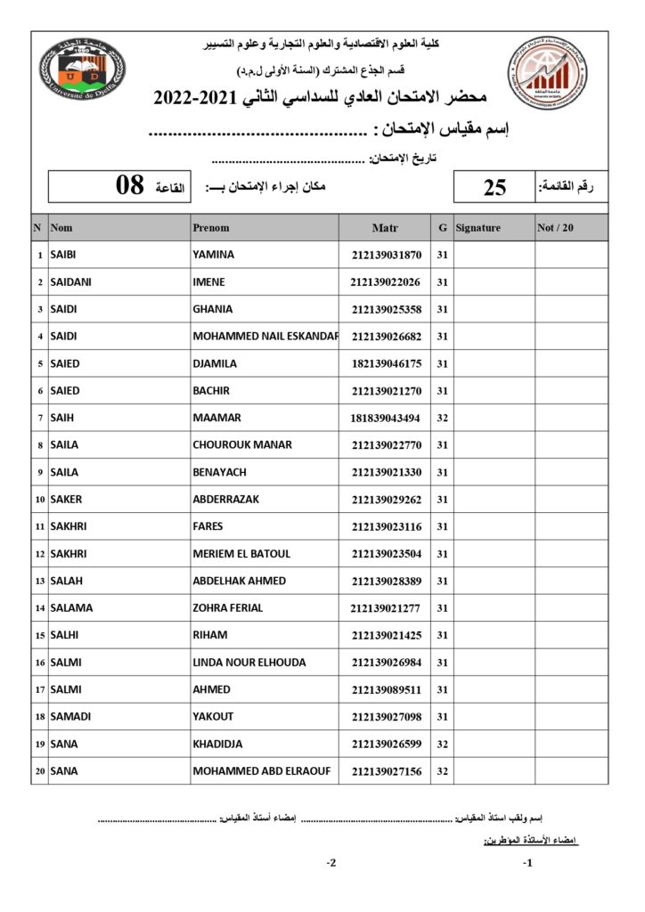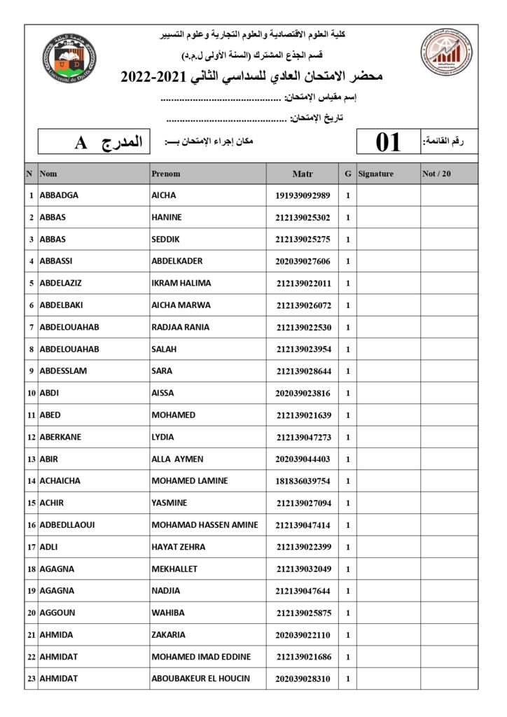 رزنامة امتحانات السداسي الثاني السنة أولى جذع مشترك للسنة الجامعية 2022/2021 +أماكن توزيع قاعات الإمتحان