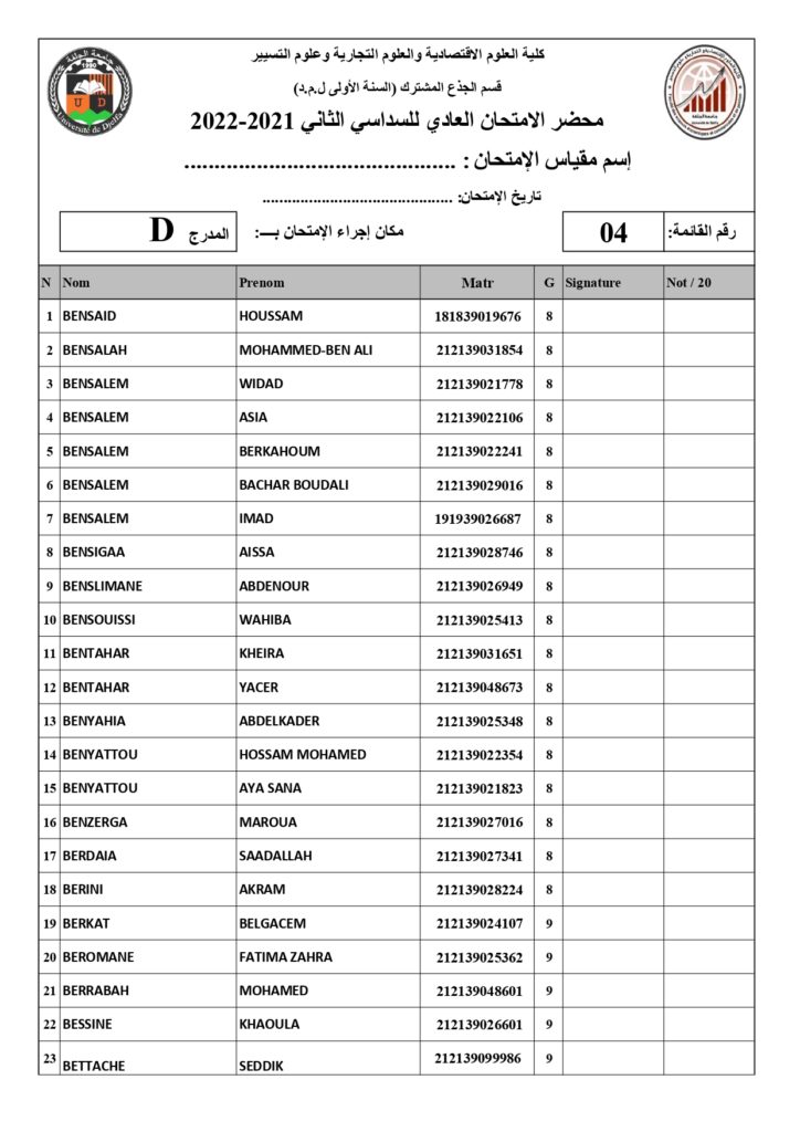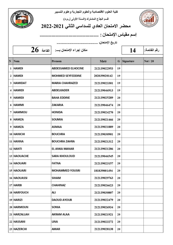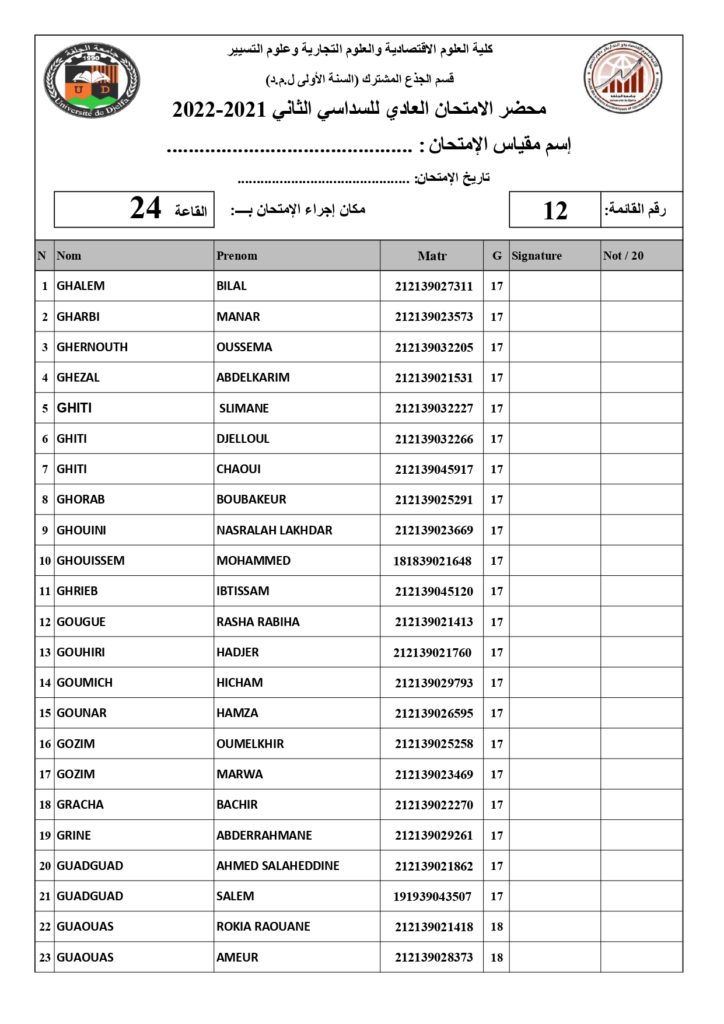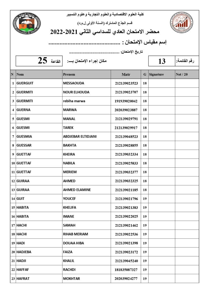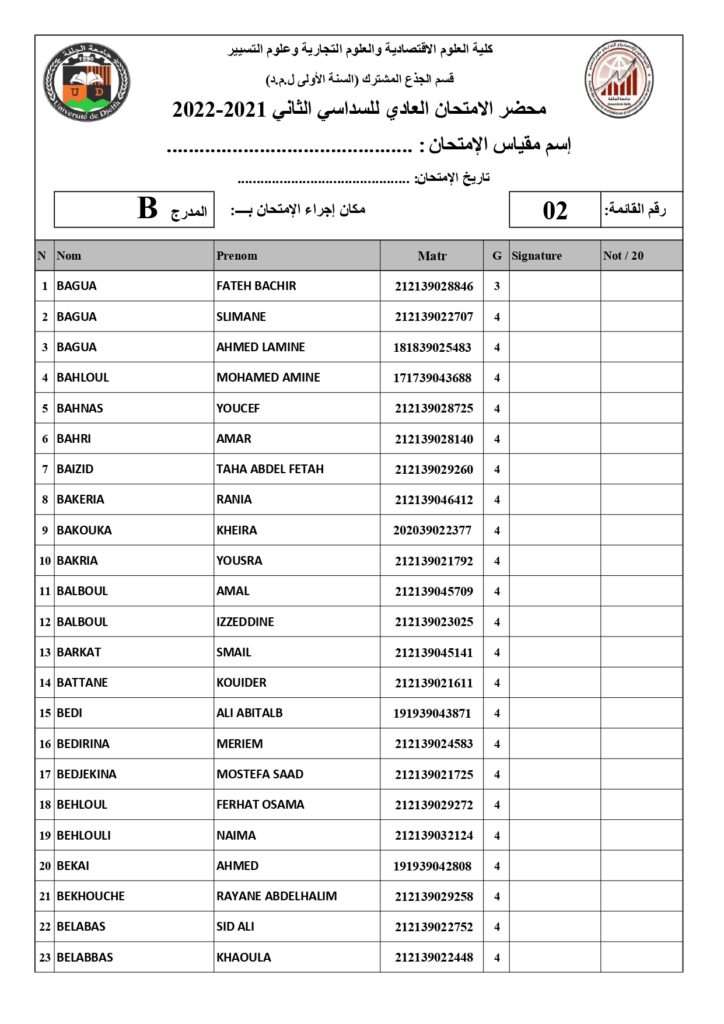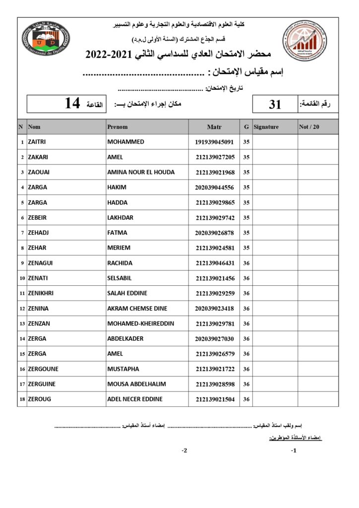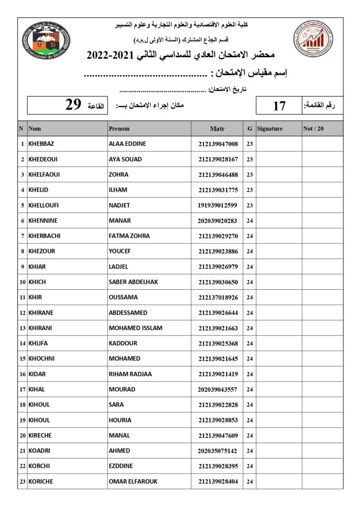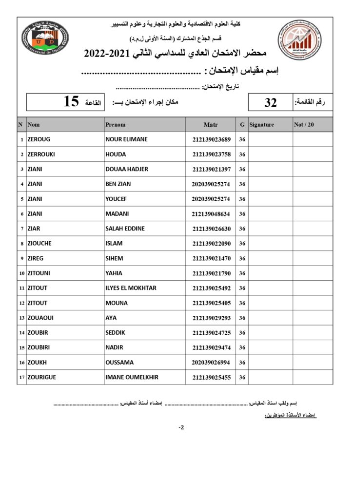 رزنامة امتحانات السداسي الثاني السنة أولى جذع مشترك للسنة الجامعية 2022/2021 +أماكن توزيع قاعات الإمتحان