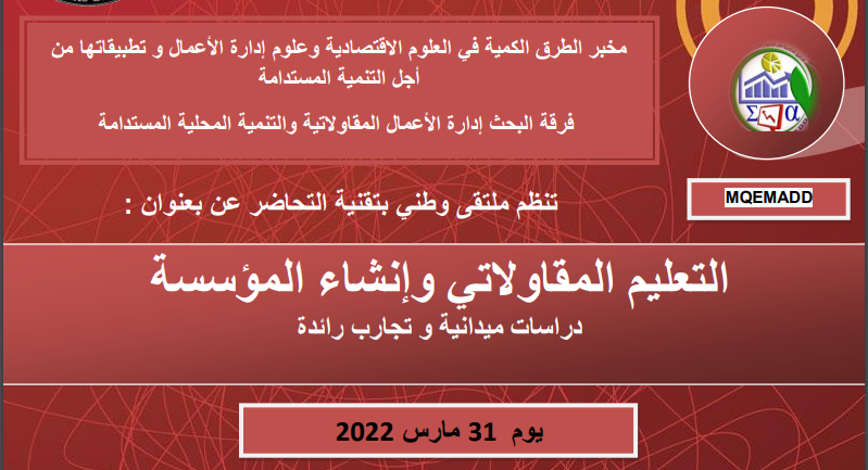 ملتقى وطني حول :” دور الأنشطة التسويقية في تفعيل أداء المؤسسات الناشئة “